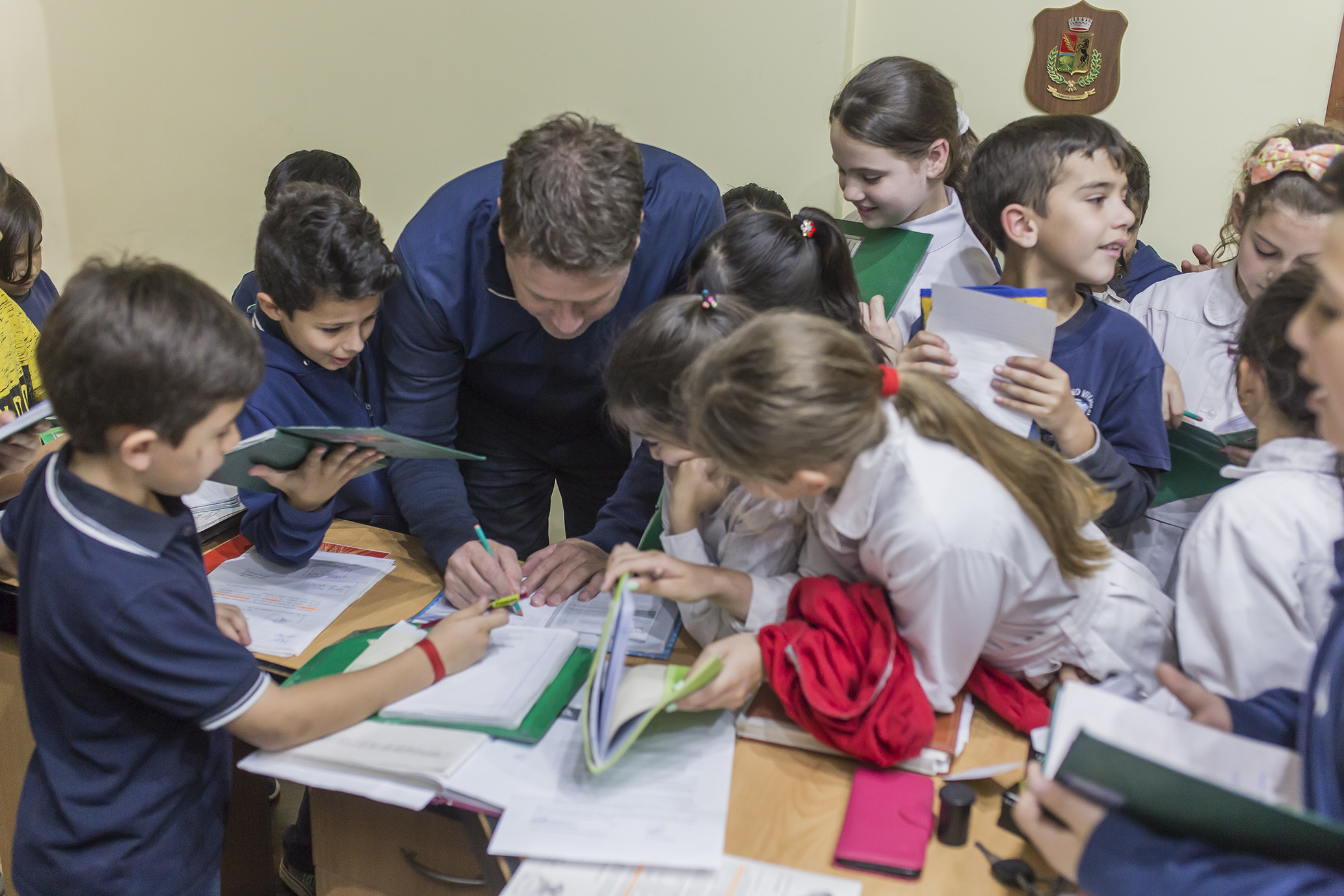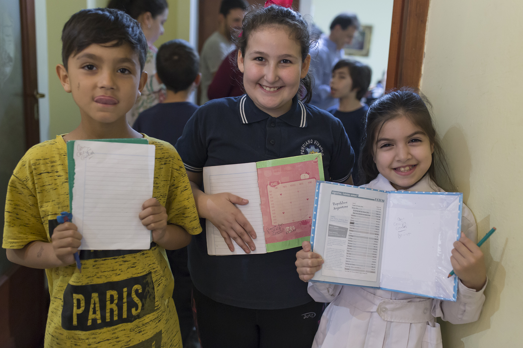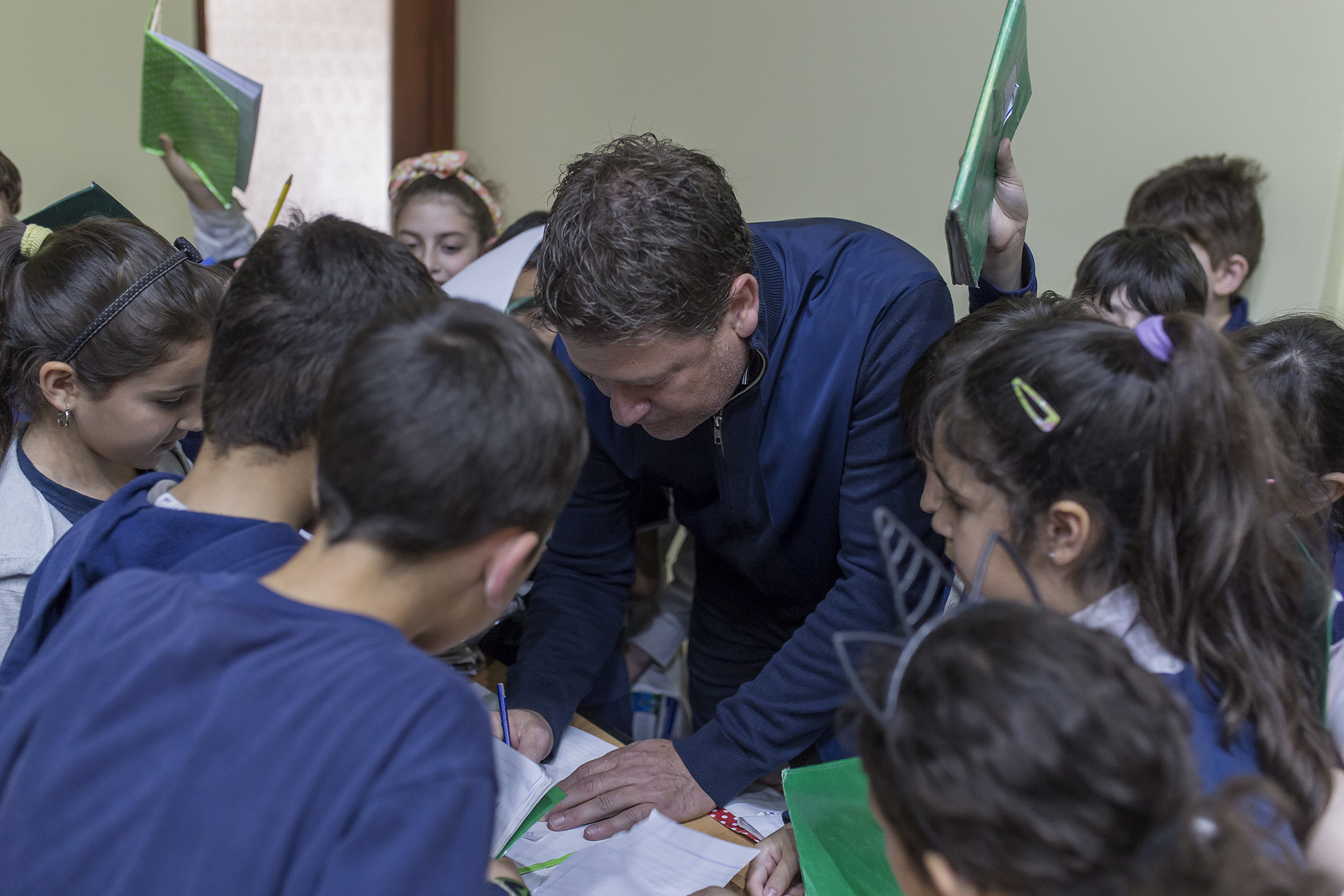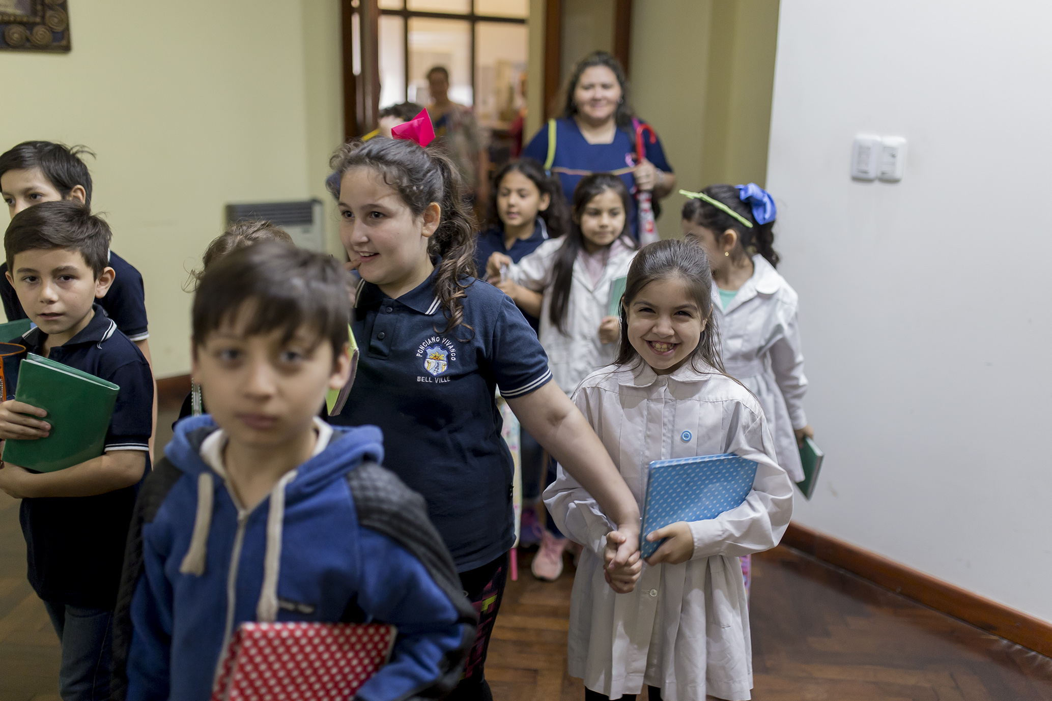 Tras la información brindada por personal municipal en el salón Walter de Navazio, las niñas y niños, acompañados de las docentes Laura Paola Serra y María Rosa Alzamendi, fueron recibidos por el intendente, Carlos Briner.