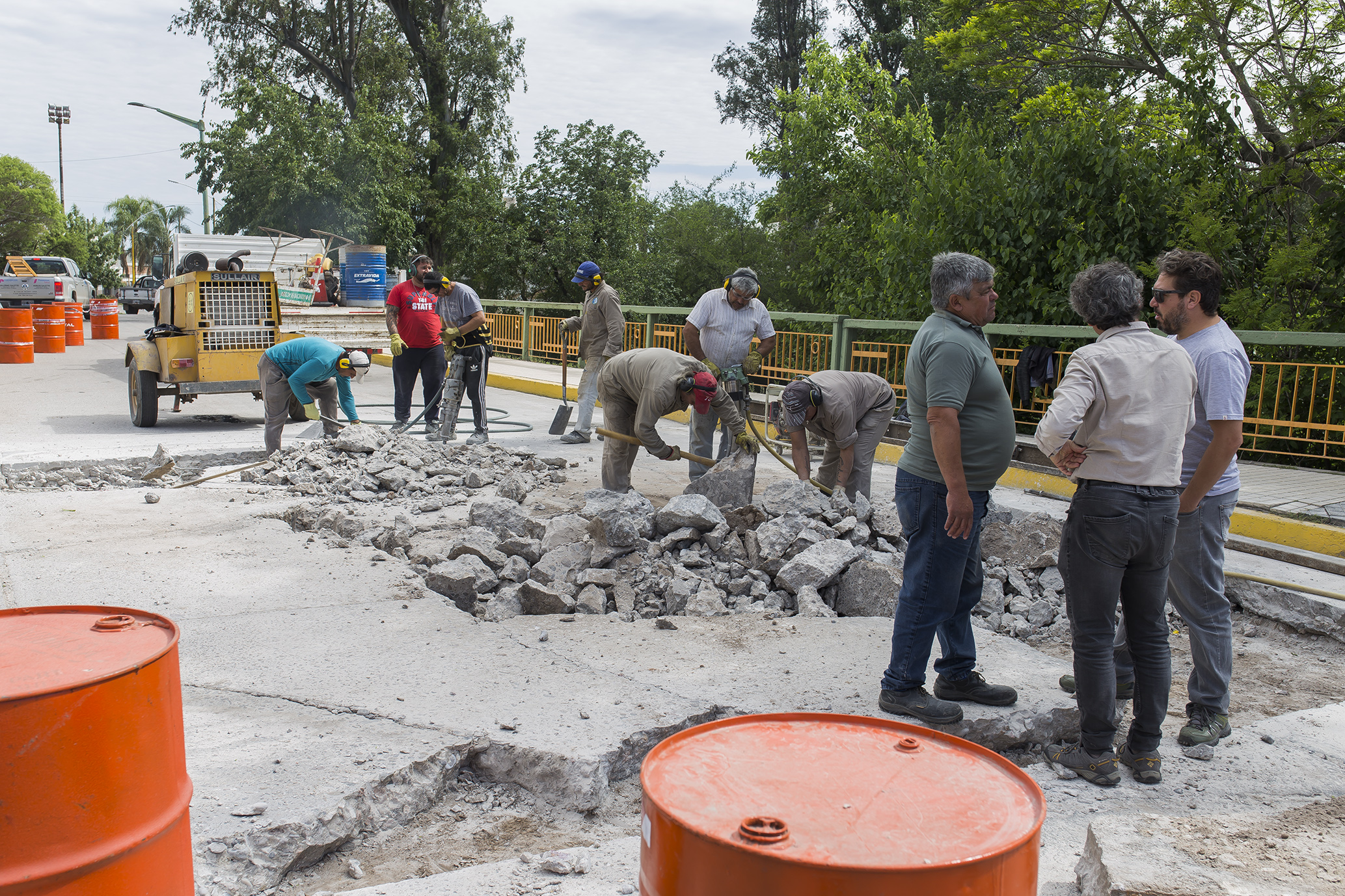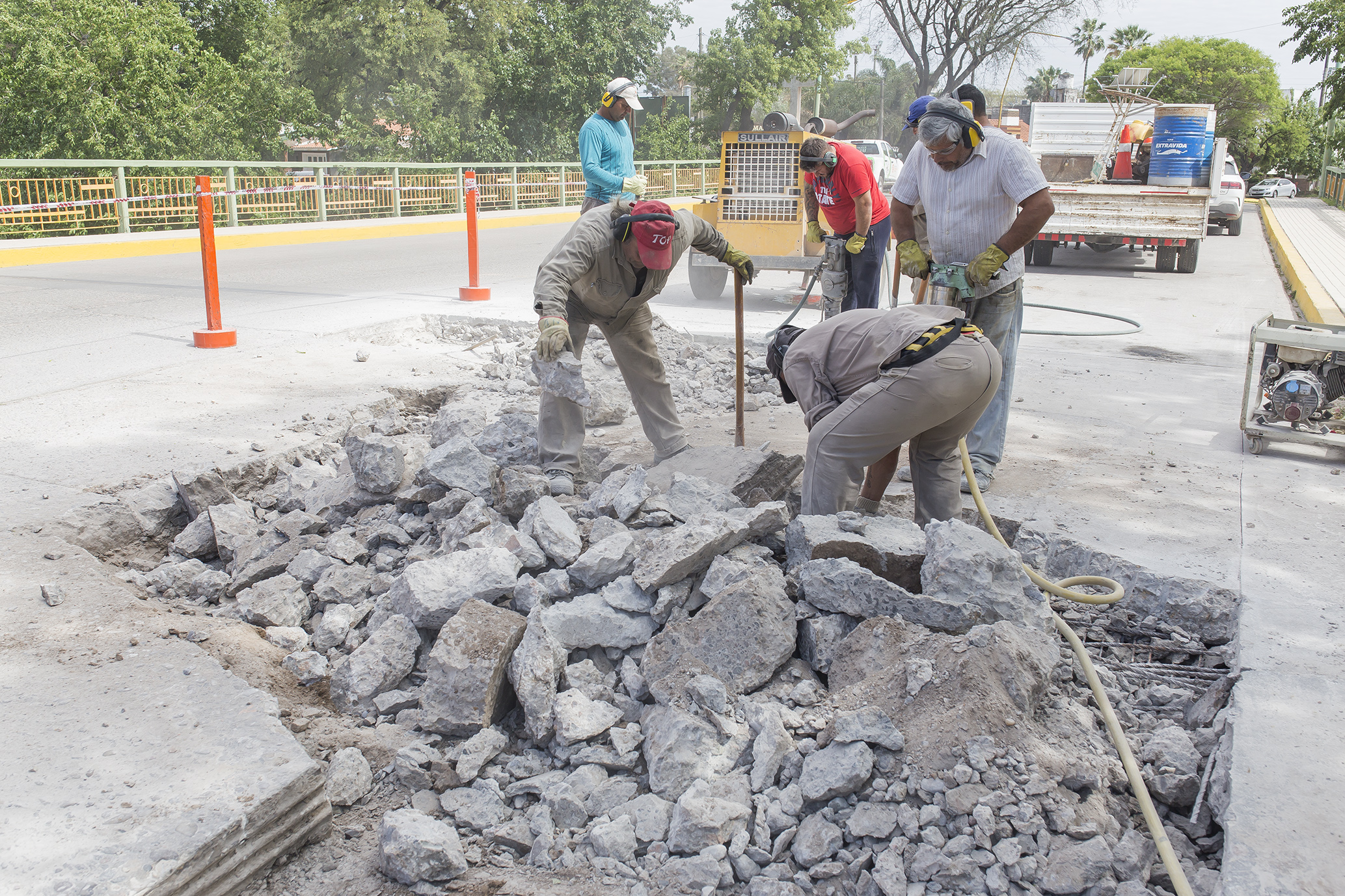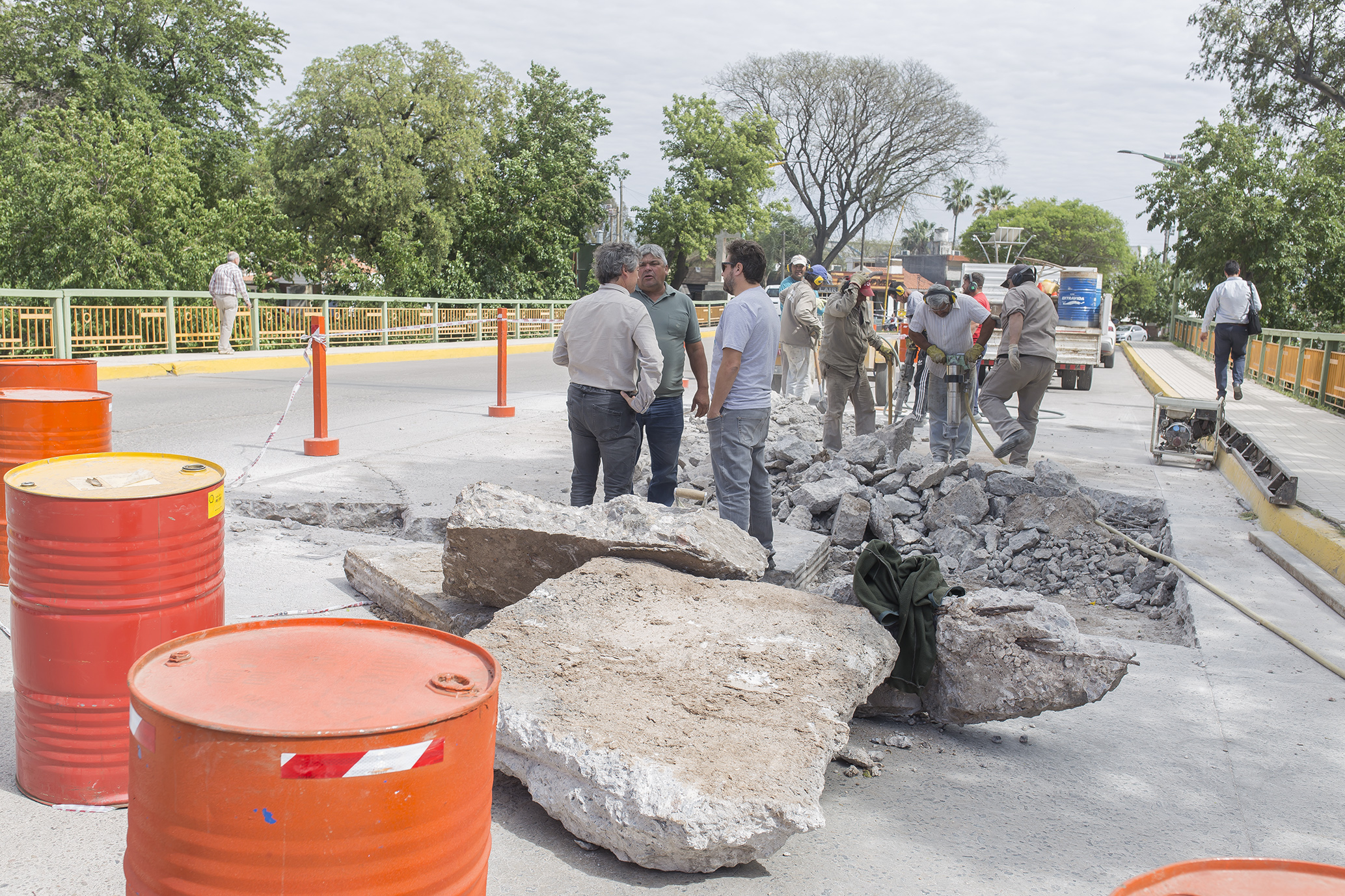 Con la incorporación de más personal, herramientas y maquinarias se continúa con la remoción de los paños de hormigón deteriorados del Puente Sarmiento, con el fin de reemplazarlo por similar material.