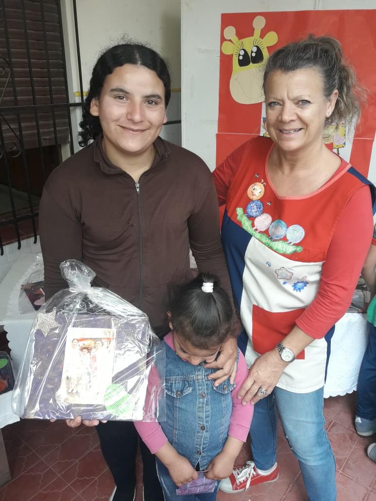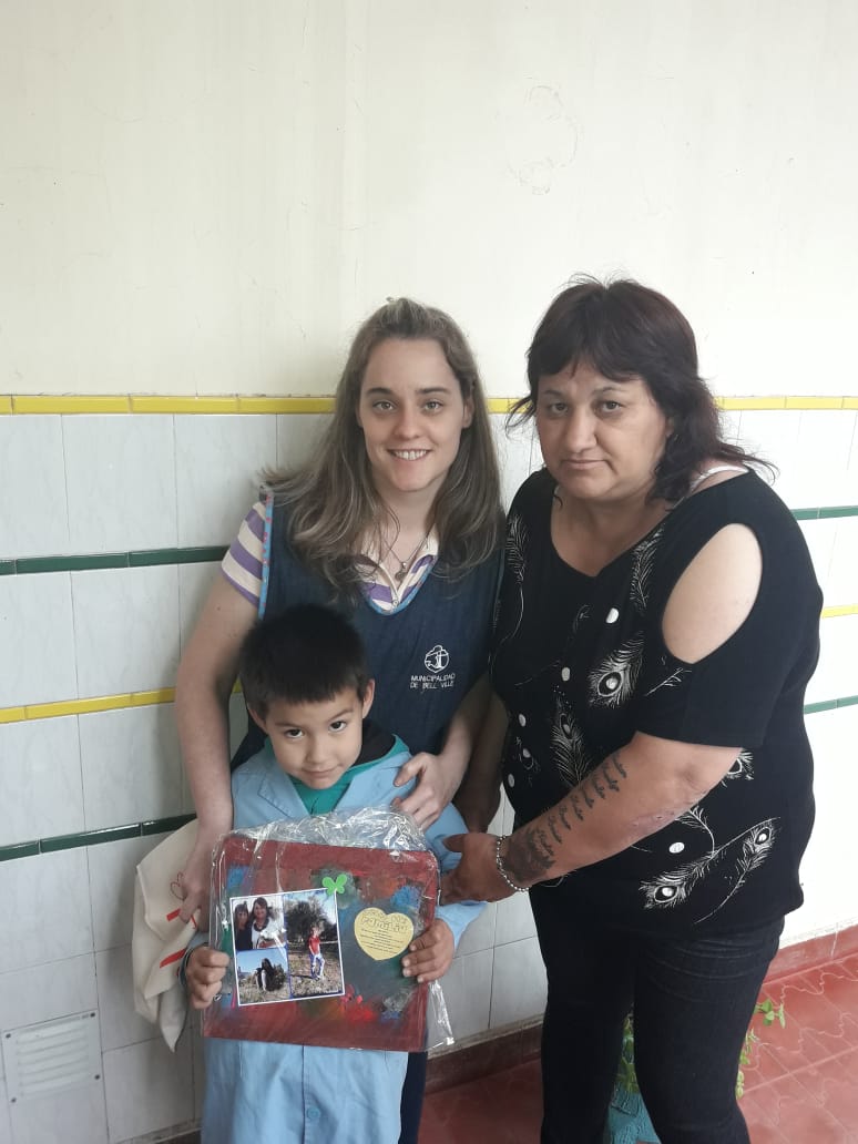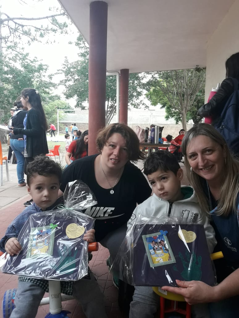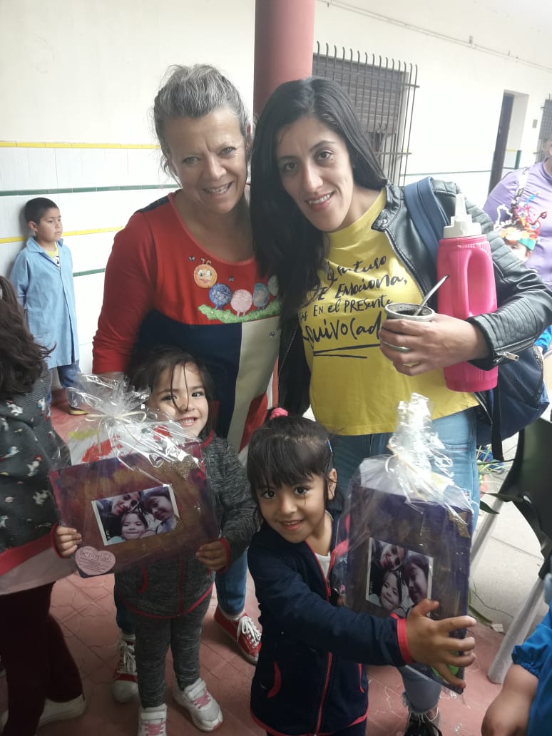 En el cálido encuentro, niñas y niños les entregaron a los padres y madres un cuadro hecho por ellos mismos con una foto de su familia.
