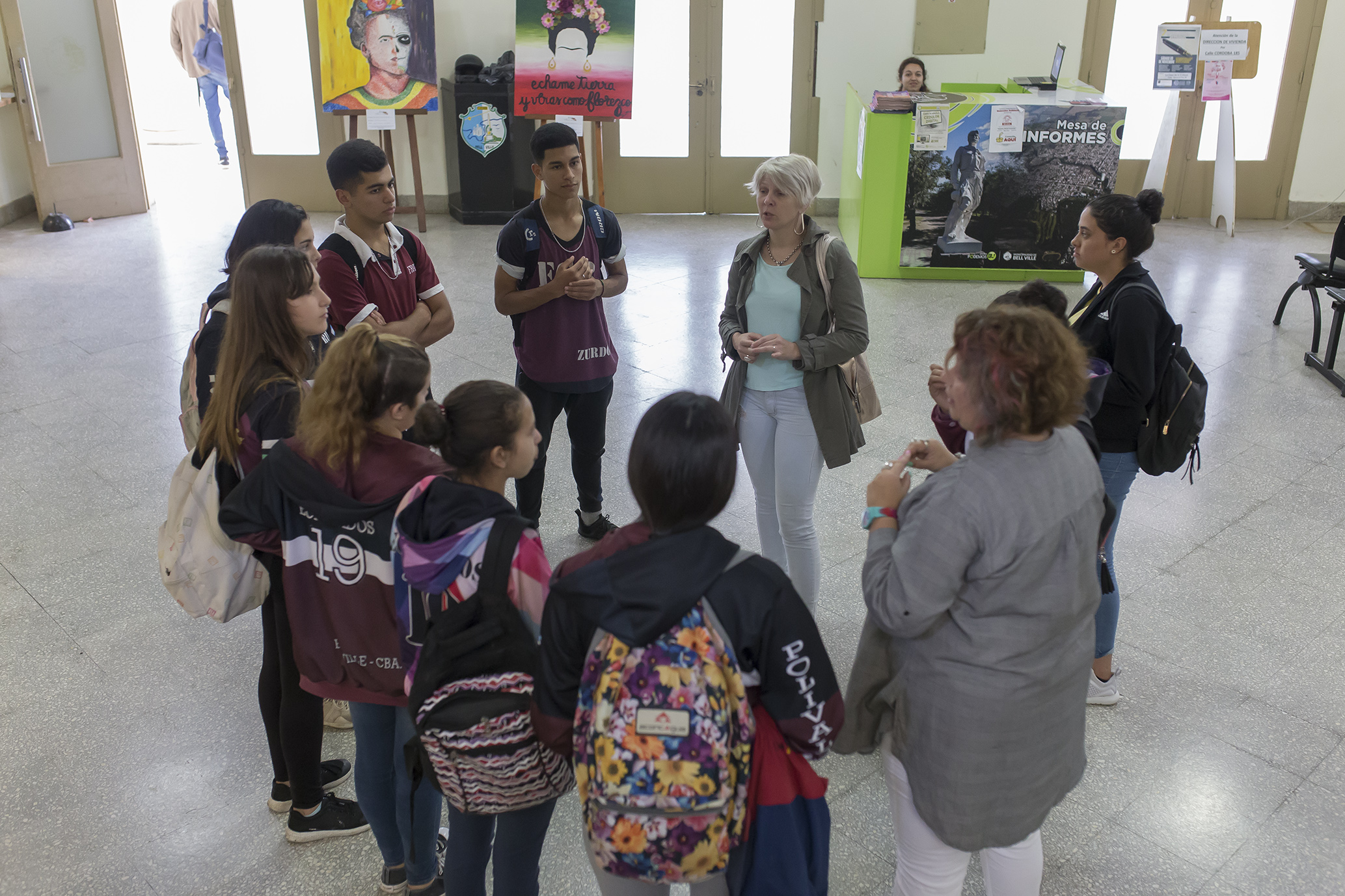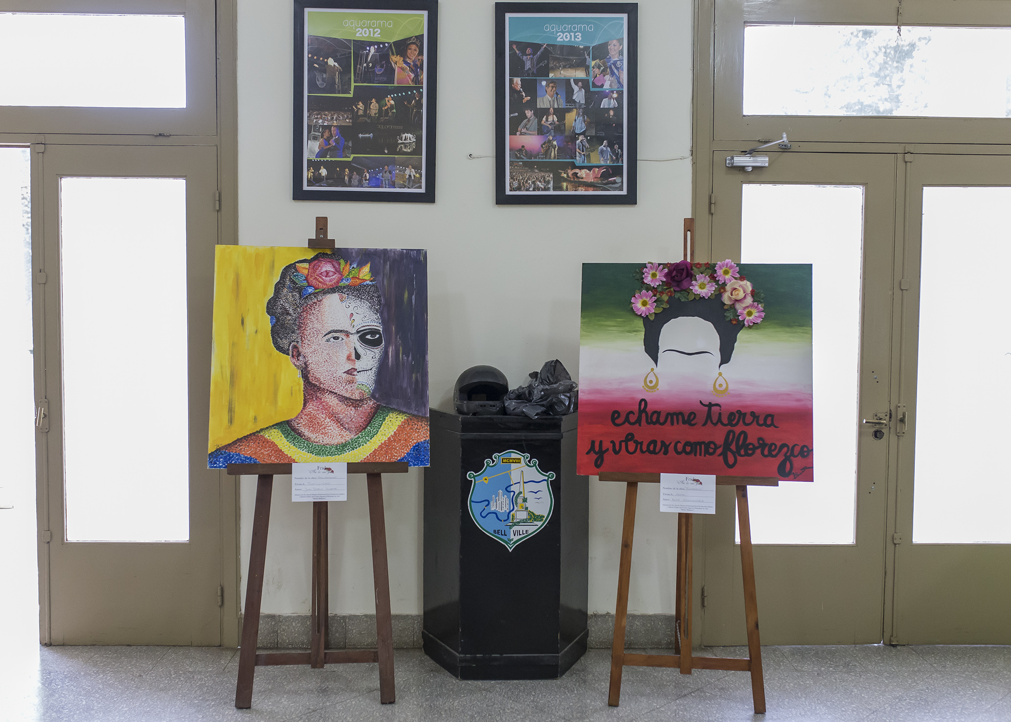 En el hall de la Municipalidad se exhiben las obras que con técnicas mixtas elaboraron nueve estudiantes de la cátedra de Práctica Profesional II, Diseño Gráfico y Producción Artística del Centro Superior Polivalente de Arte “Martín Malharro”.