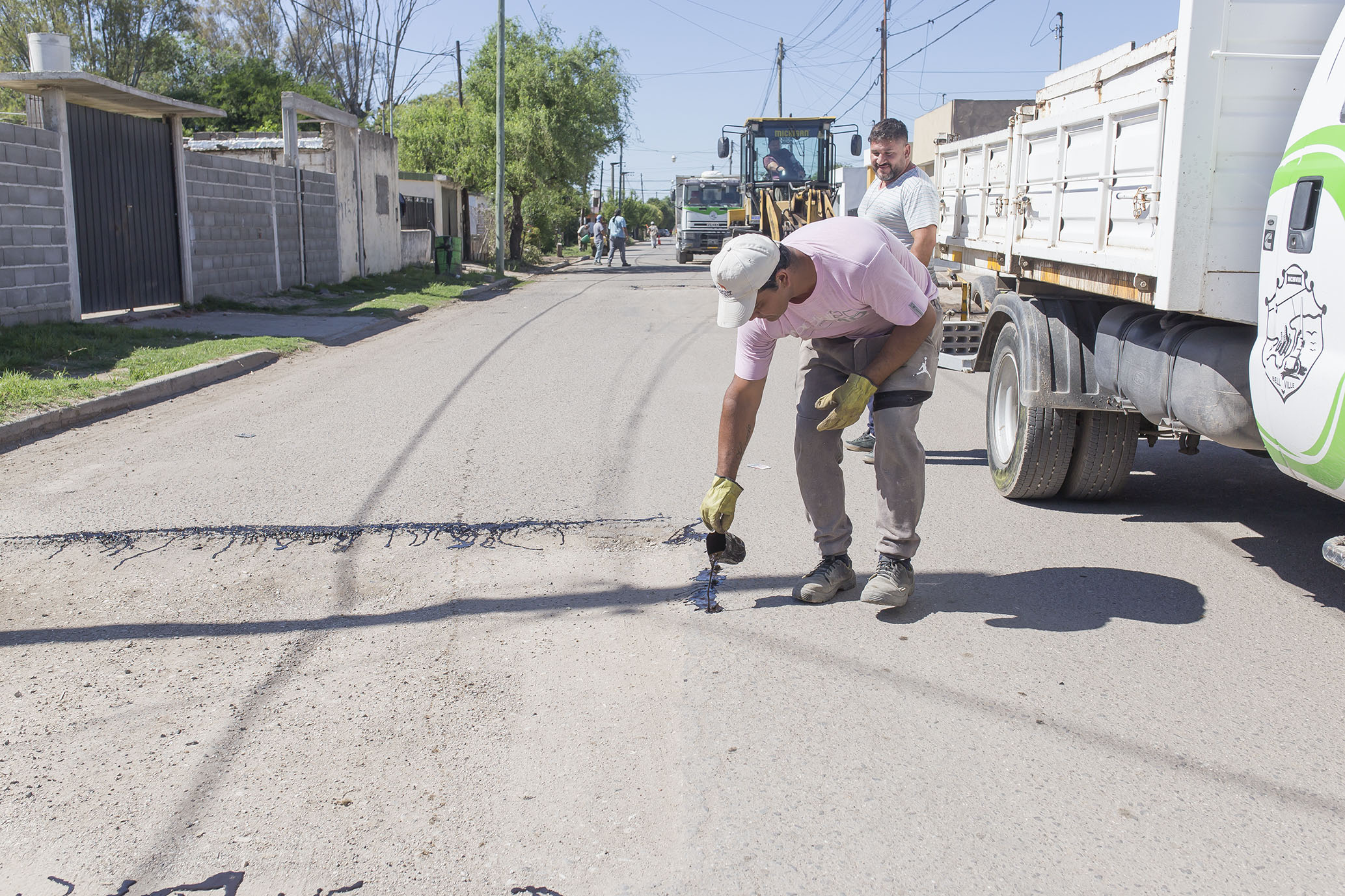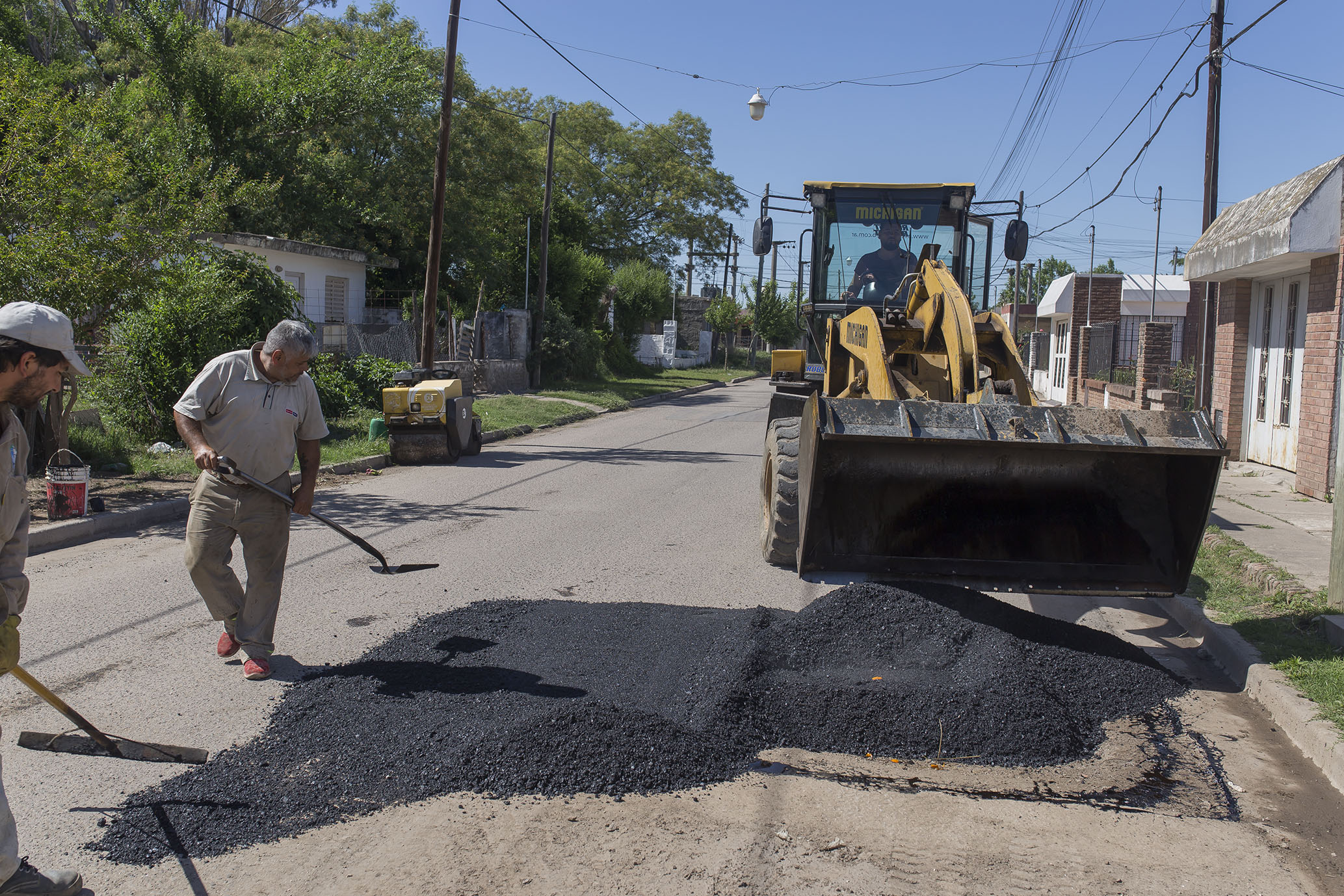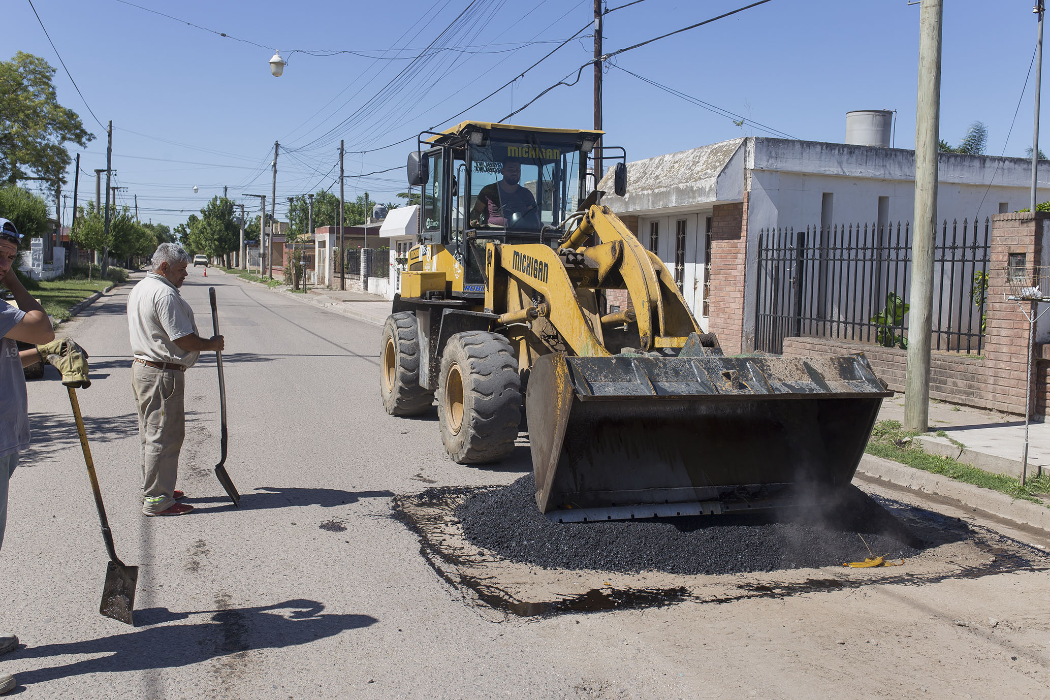 Allí se realiza el bacheo con asfalto en caliente, previa remoción de los sectores más dañados.