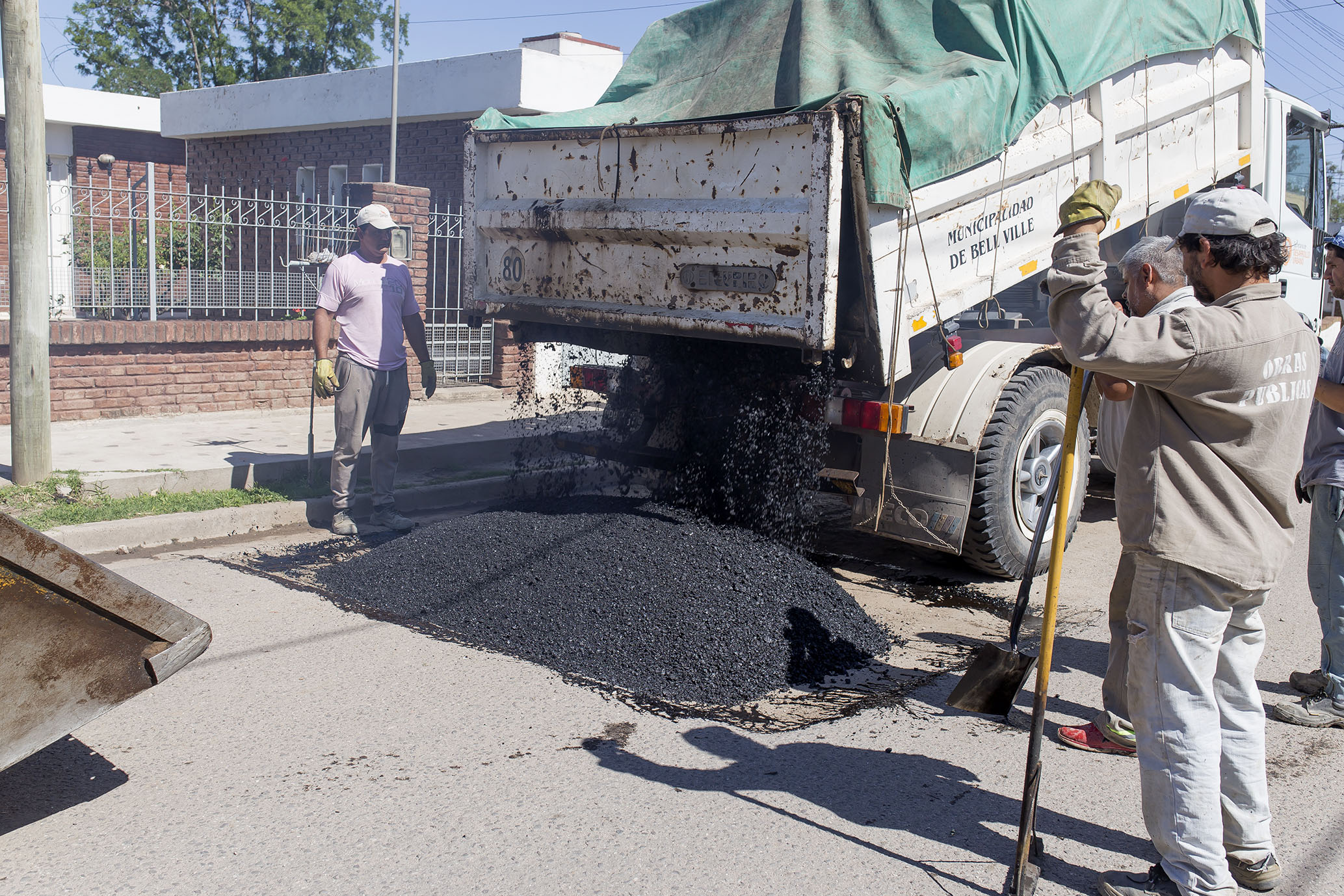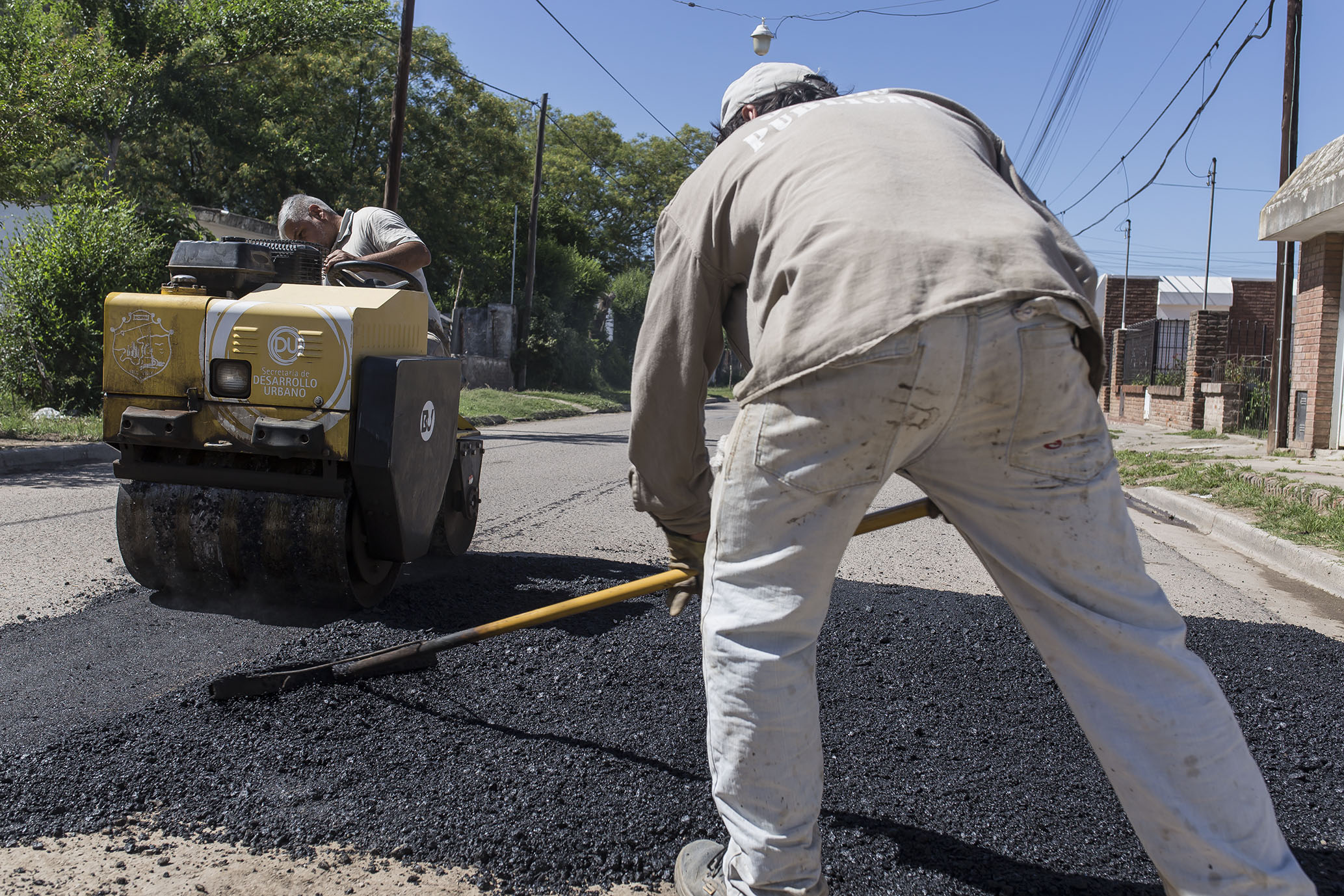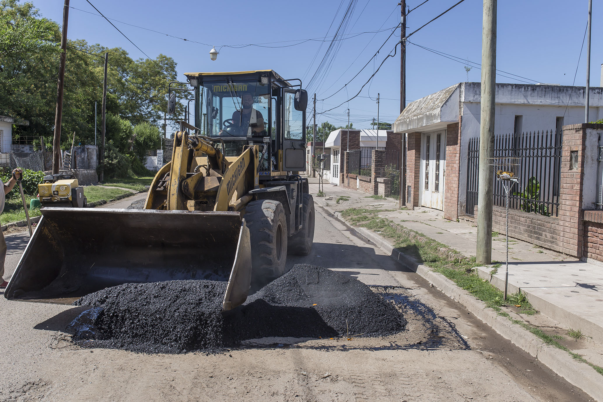 Allí se realiza el bacheo con asfalto en caliente, previa remoción de los sectores más dañados.