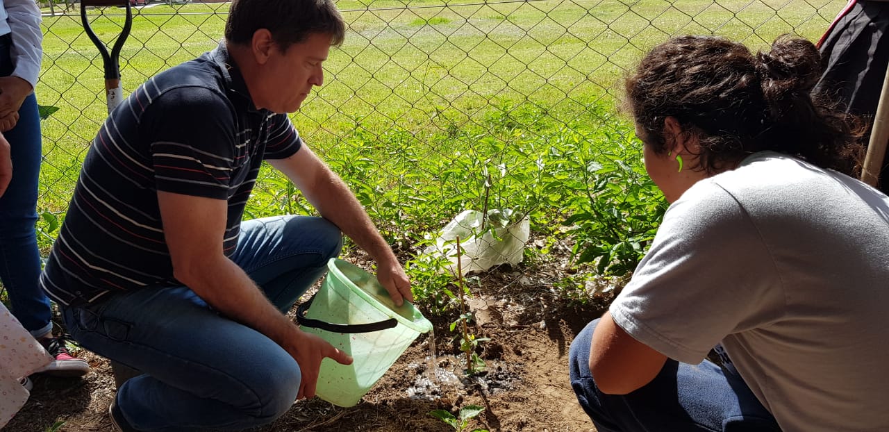 Junto al responsable municipal del cuidado del Parque Tau, Carlos Cuccioletta, el intendente Carlos Briner participó ayer en la Escuela John F. Kennedy de Las Peñas, departamento Totoral, de una interesante experiencia sobre el cuidado del medio ambiente con plantación de árboles y actos referidos a la tradición.