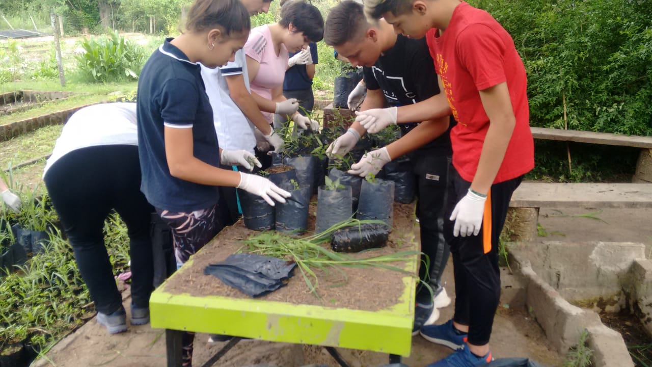 Los jóvenes cumplieron distintas actividades como colocación de plantas en maceta, con preparación previa y rellenado de tierra, como así también con pasantías en la zona de árboles frutales.