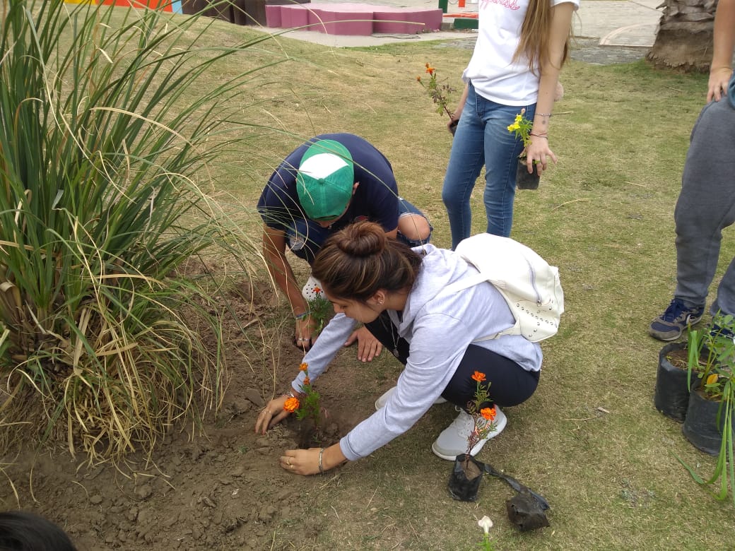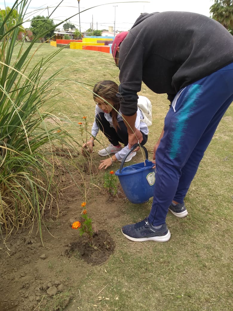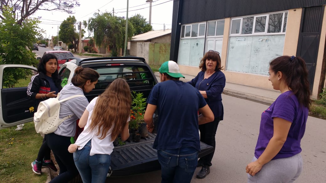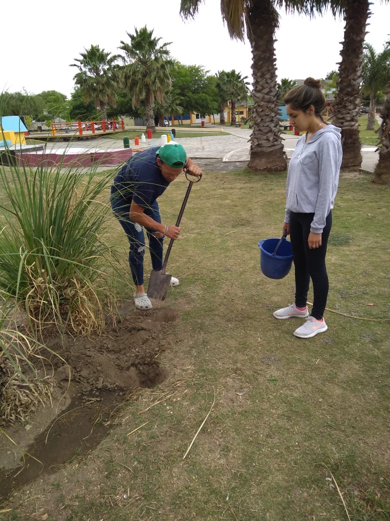 La Municipalidad, a través de la dirección de Centros Vecinales provee materiales y hasta plantas para un trabajo sociocomunitario encarado por los estudiantes de 4to y 5to años de la sección Educación Física del IPEM Nº 290 Manuel Belgrano Ex Nacional.