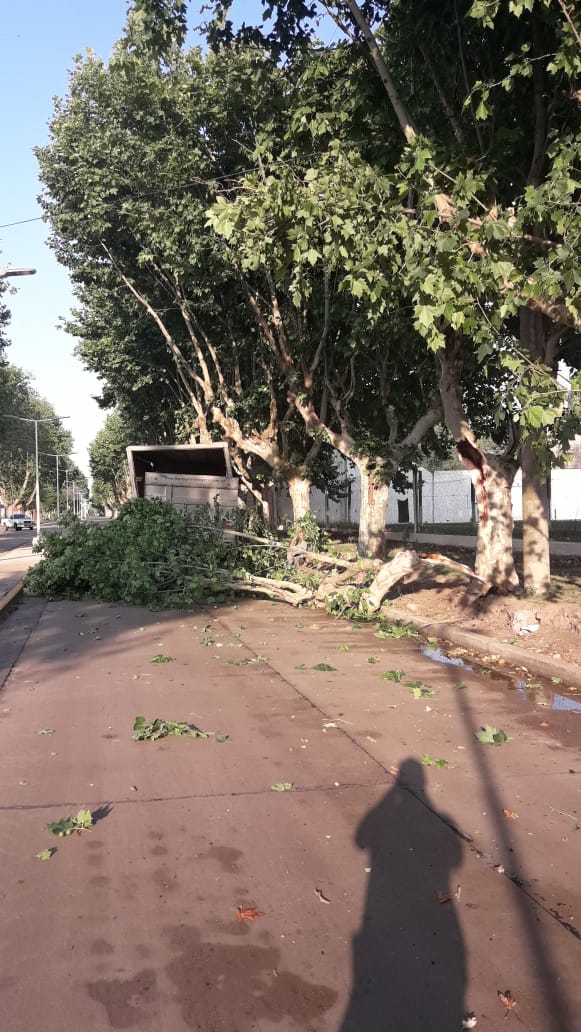 A primera hora interrumpieron el tránsito vehicular en calle Ortiz Herrera y Chacabuco por la caída de un árbol, producto del fuerte viento de anoche que se registró en la ciudad.