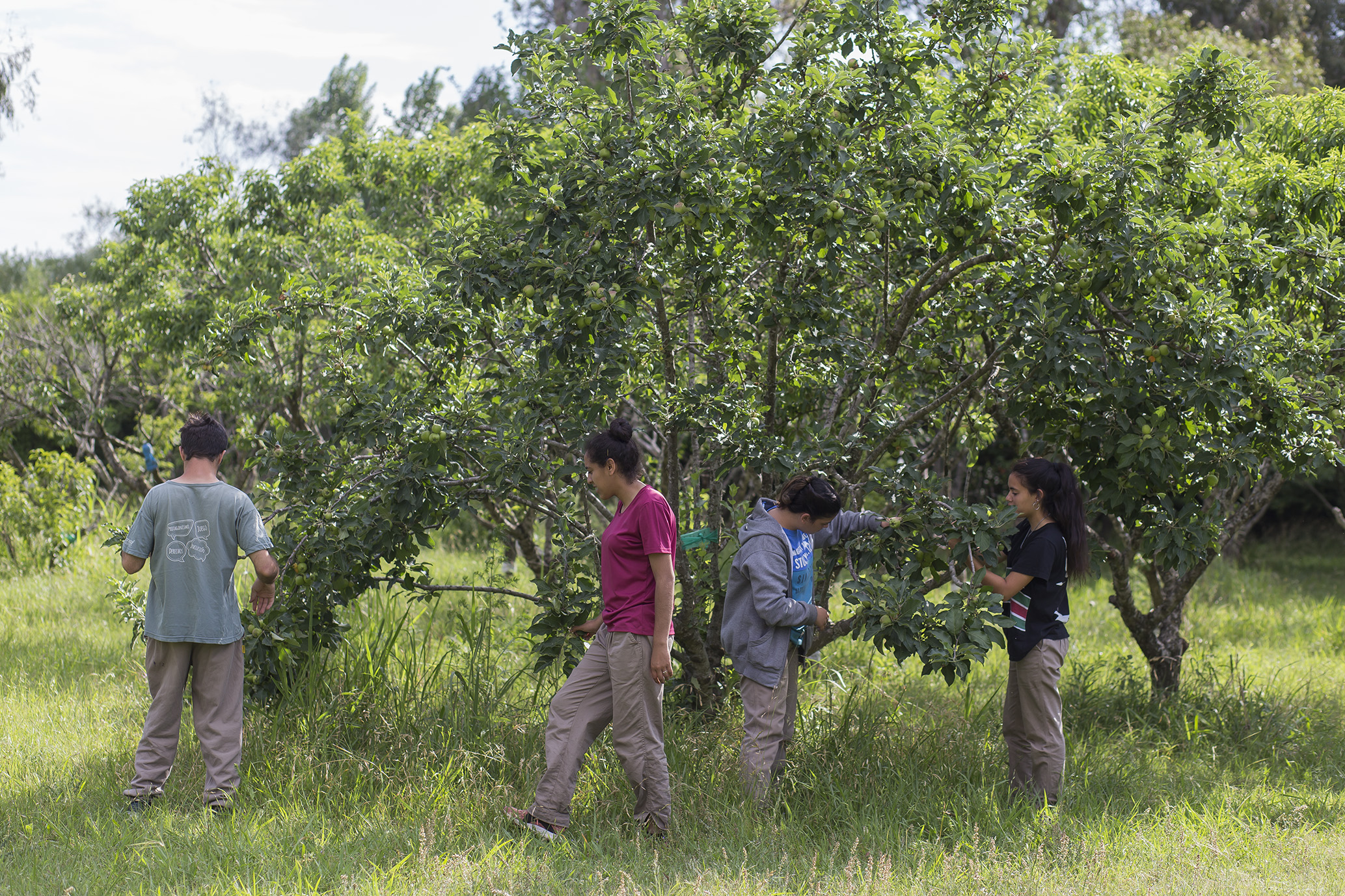 Colocaron en macetas ejemplares de casuarinas y procedieron a la limpieza de los frutales que ellos cuidan en el marco de un trabajo interinstitucional entre el municipio y el establecimiento educativo.