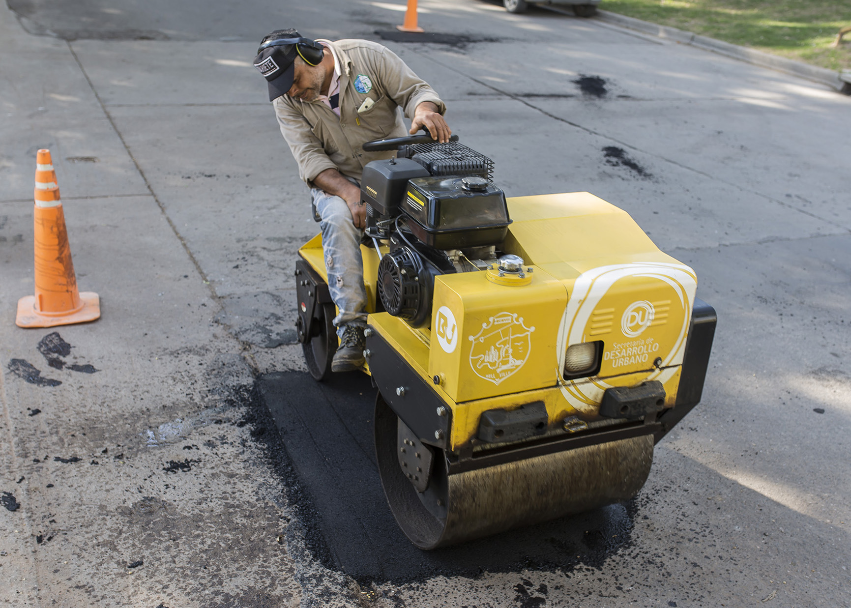 En la continuidad de la reparación de calles se trabaja en la arteria de Int. Da Silva. Allí, personal municipal cumple tareas de bacheo con asfalto en caliente.