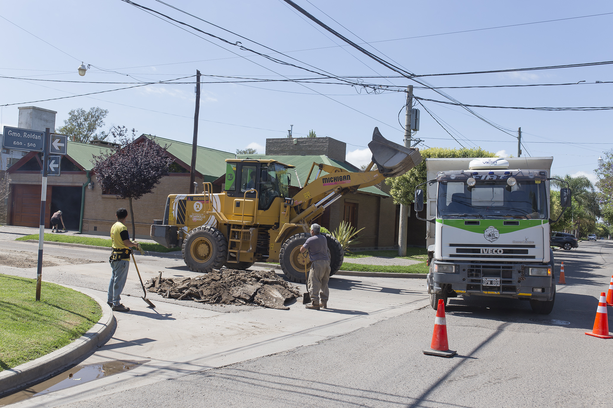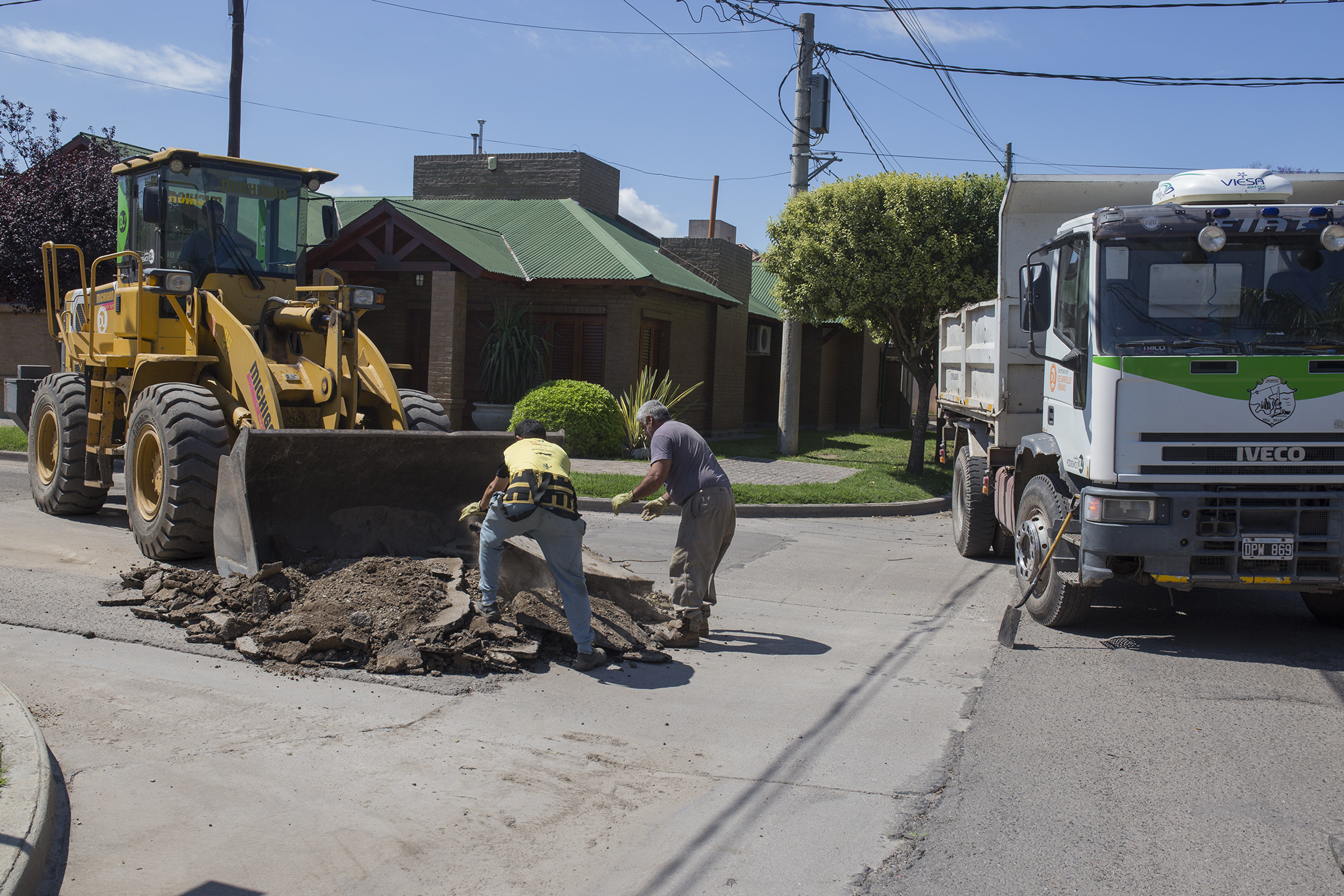 Paralelamente, se está rellenando con hormigón la bocacalle de Avellaneda y Catamarca, donde previamente se levantaron los paños deteriorados.