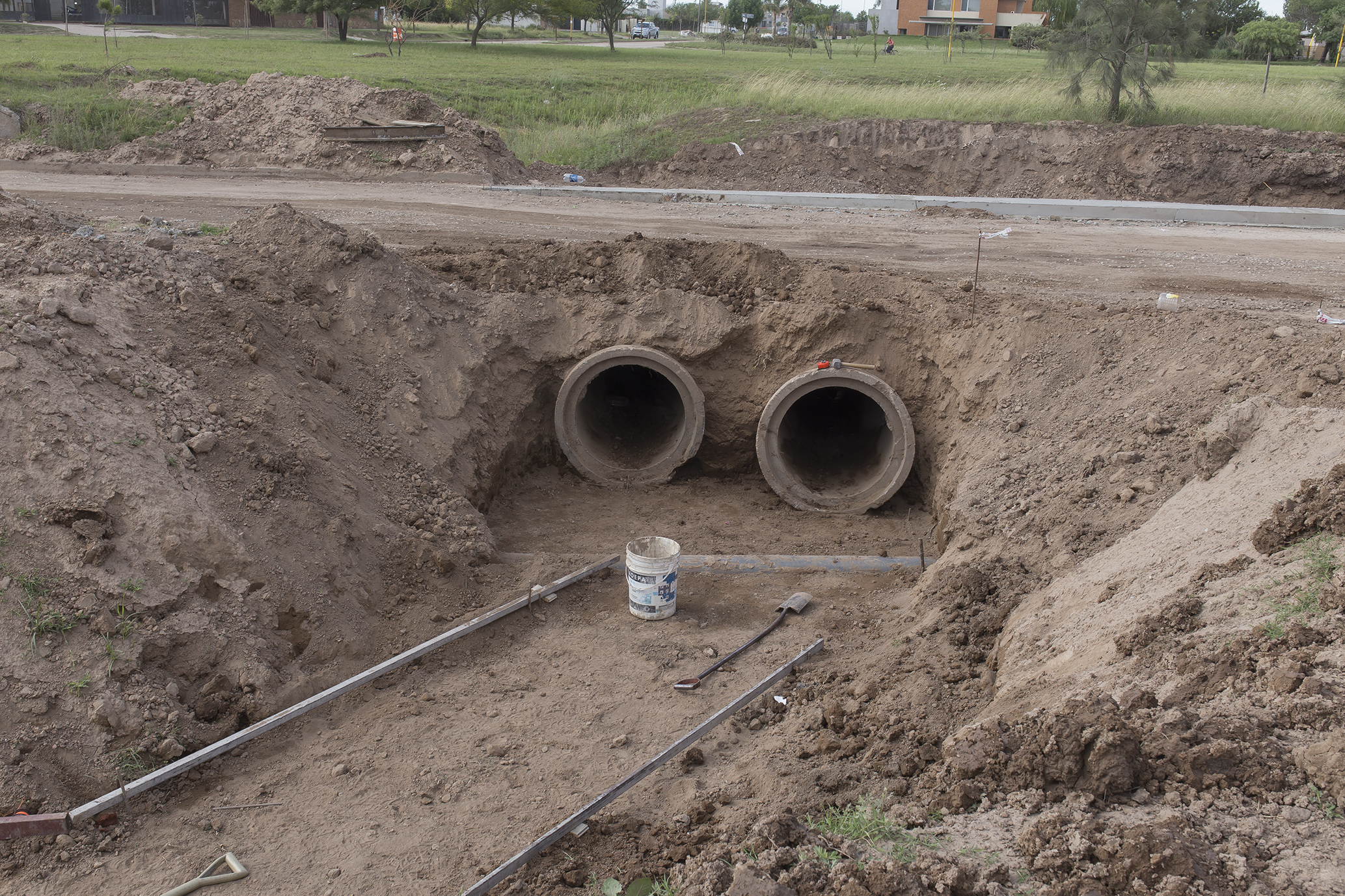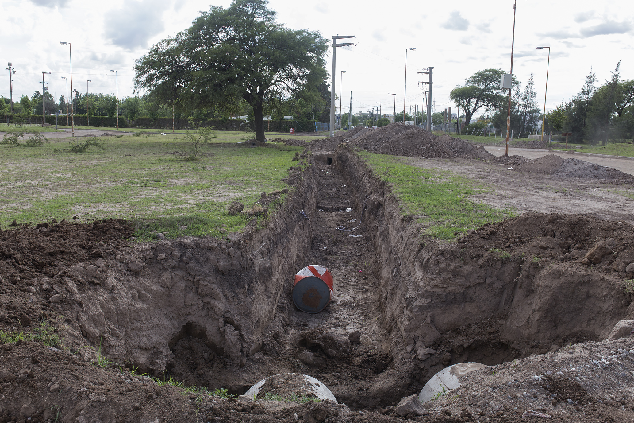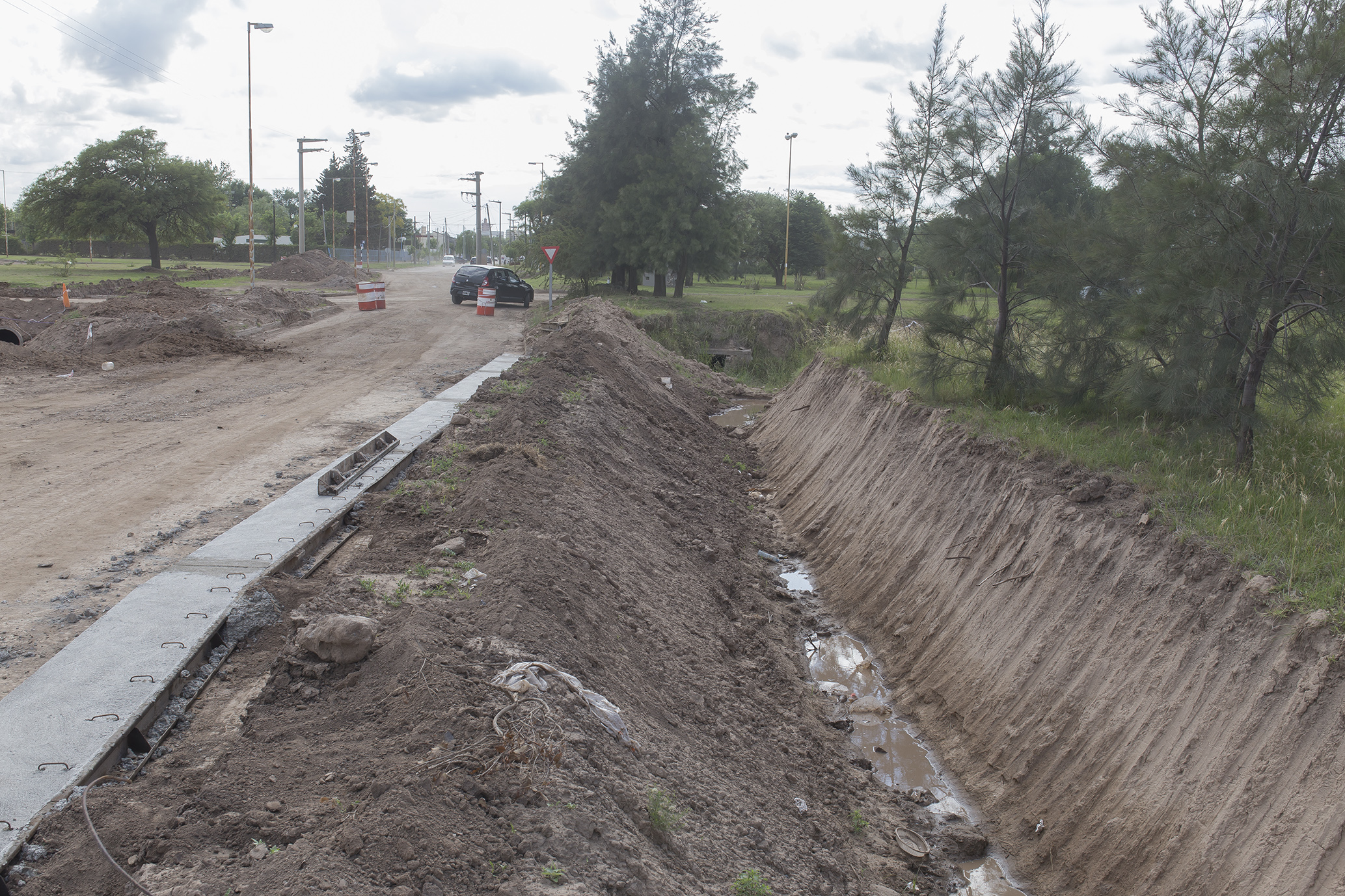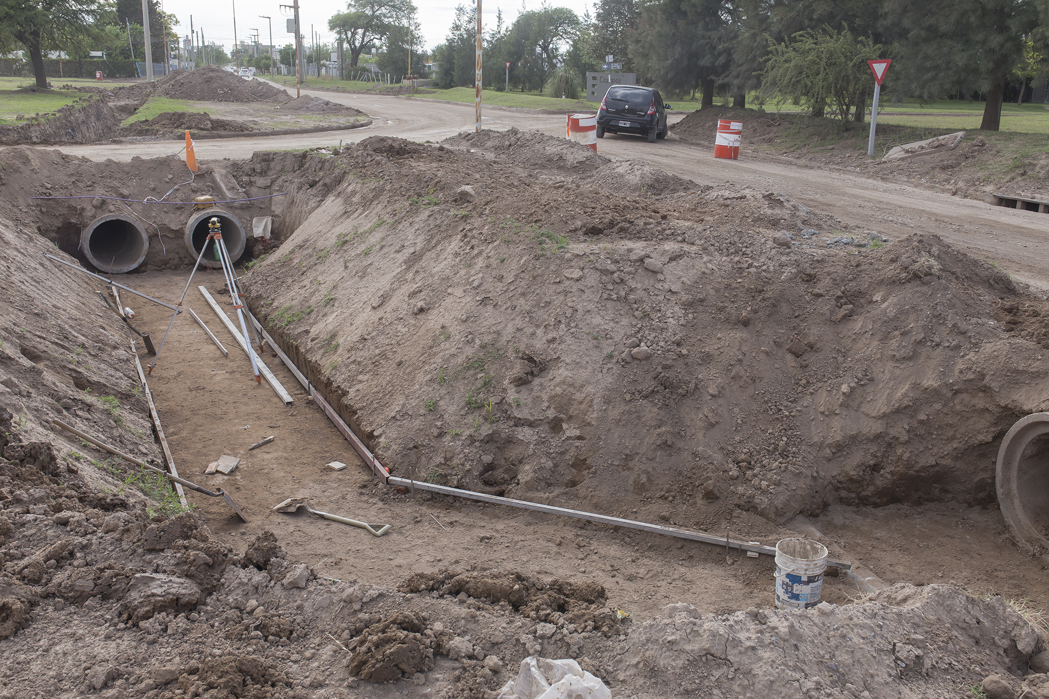 Por el otro, se desarrolla la obra de sistematización del canal de desagüe subterráneo en todo el sector de la rotonda, para lo cual se colocaron cañerías y se están hormigonando otras partes del ducto.