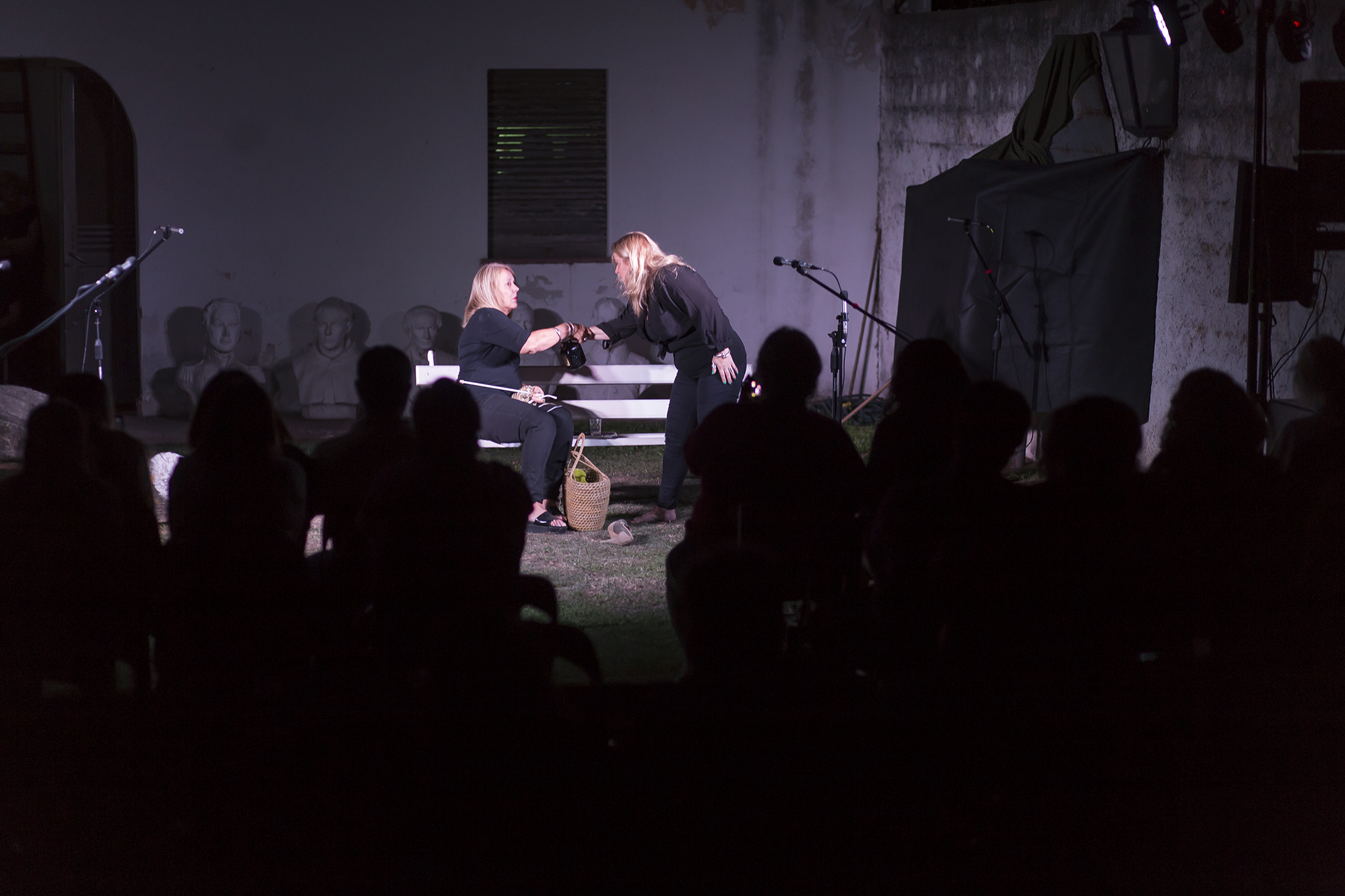 El escenario natural y una noche acorde a las circunstancias, fueron determinantes para convocar a cerca de 200 espectadores quienes  fueron testigos durante casi tres  horas de un  desfile muy singular de todos los actores vocacionales que representan a esa institución cultural. La velada estuvo compuesta por cuadros sostenidos en monólogos y breves sketches, representados por no más de tres personajes por salida,  los cuales fueron hilvanando historias  unas tras otras, distribuidas en drama, comedia, dirección en escena con improvisación pautada y otros.