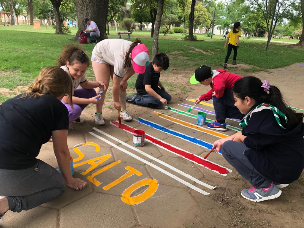 La Manada Peña de la Paz dibujaron juegos para niños en la Plaza Haedo, en una propuesta impulsada por los lobatos (integrantes de la rama menor del Grupo Scout Francisco Tau) en el marco del foro anual propuesto por Scout de Argentina, el cual se encuentra enmarcado en la iniciativa del pedagogo italiano Francesco Tonucci.