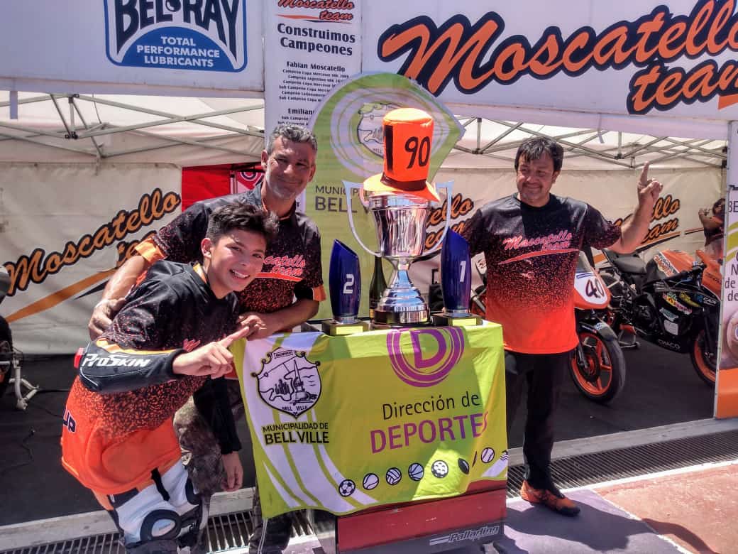 Moscatello Team tuvo un largo festejo el domingo con Mateo Mayorga coronándose campeón en el SuperBike Argentino. En la última fecha del certamen disputada en San Nicolás, el equipo de competición bellvillense completó una faena que ratificó su brillo nacional en el motociclismo, mientras difundió a nuestra ciudad como Capital Nacional de la Pelota de Fútbol por todo el país junto a la pantalla del canal TyC Sports.