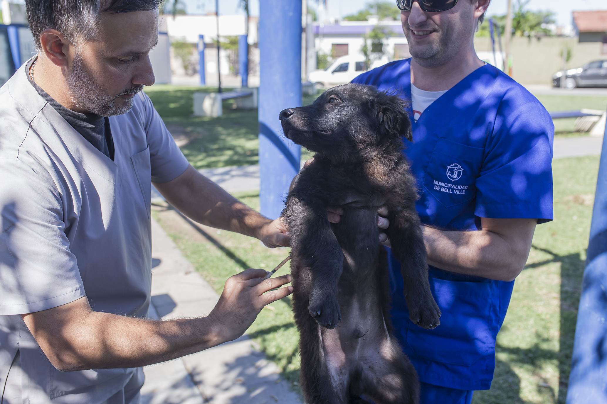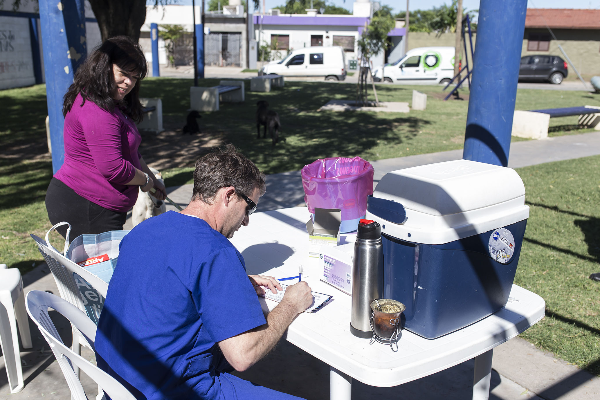 Los médicos veterinarios junto a la enfermera del área municipal de Salud Animal estuvieron esta mañana en la Plazoleta Héroes de Malvinas, de calles Lavalle y Brasil.