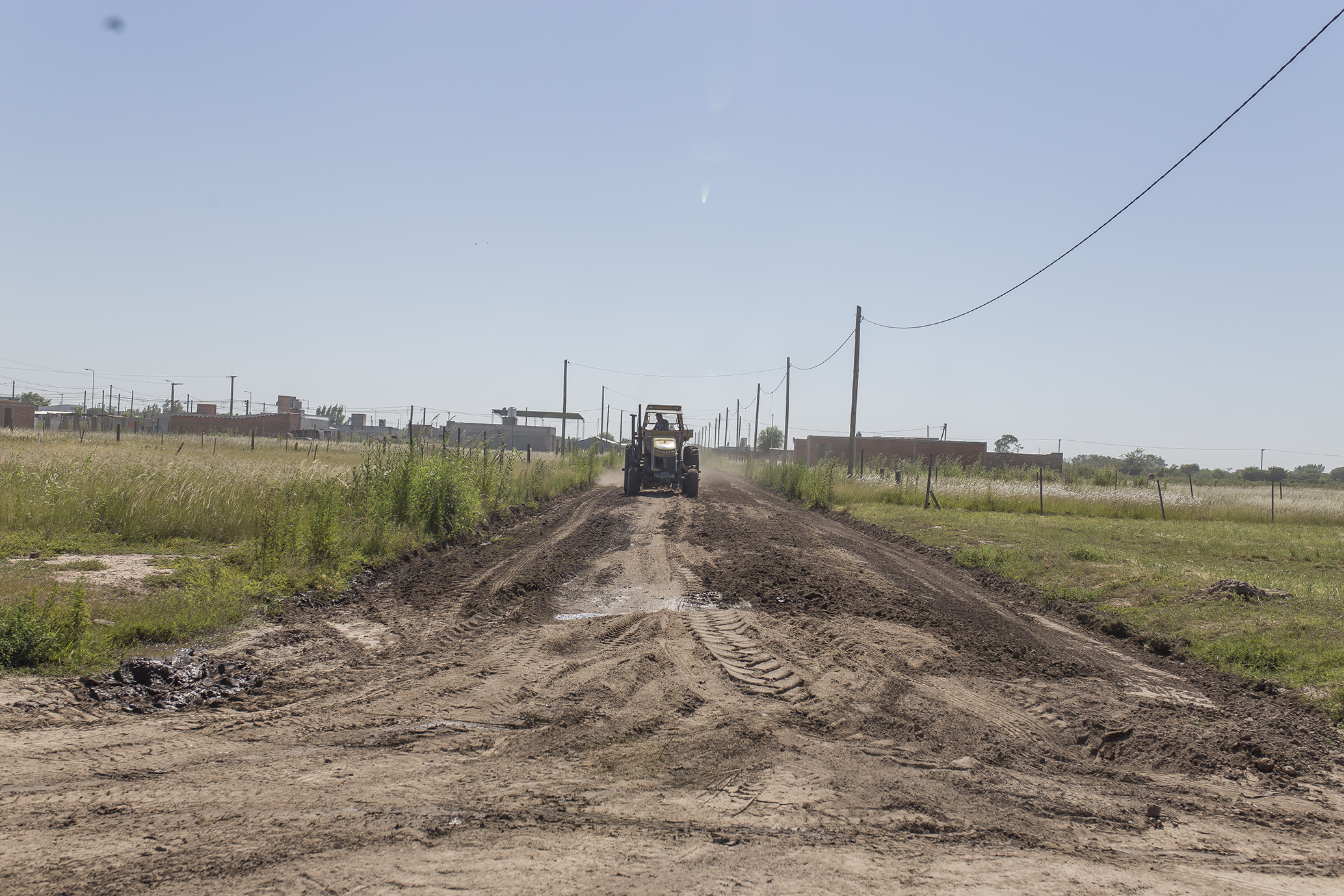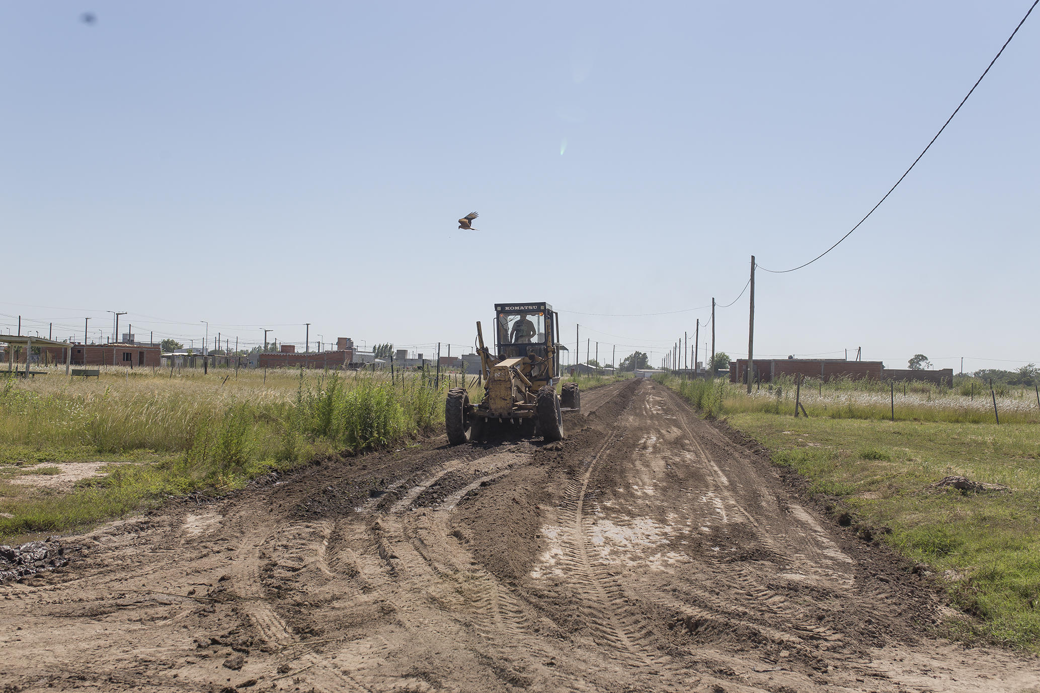 El trabajo de nivelado y reacondicionamiento de calles de tierra que lleva adelante la dirección de Obras Públicas de la Municipalidad, se trasladó al barrio Praderas del Sur.