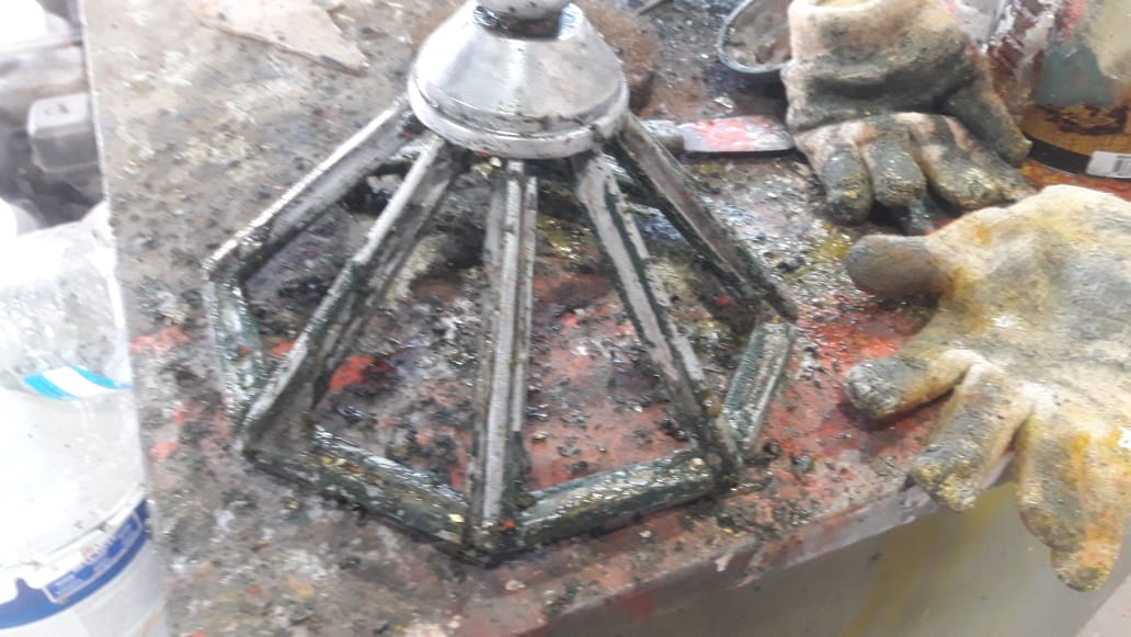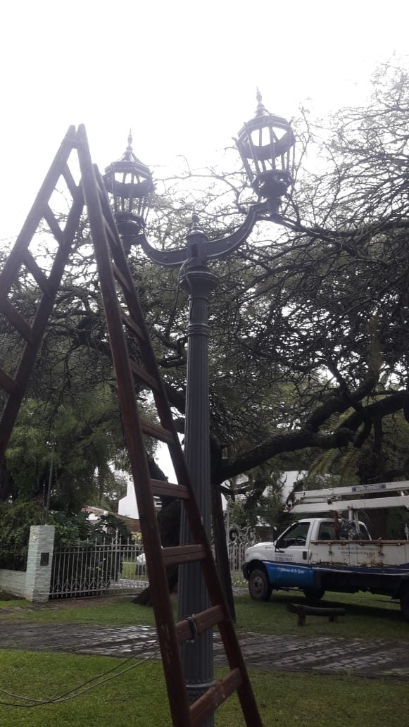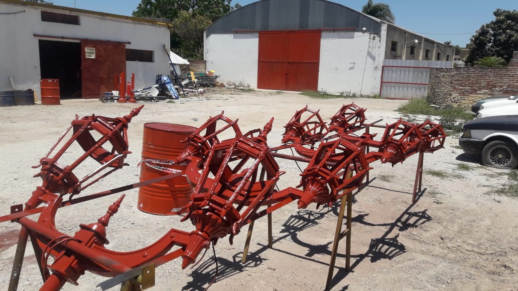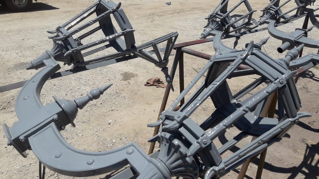 Las farolas fueron limpiadas y pulidas para luego ser pintadas con adherentes, antióxido y gris como terminación.