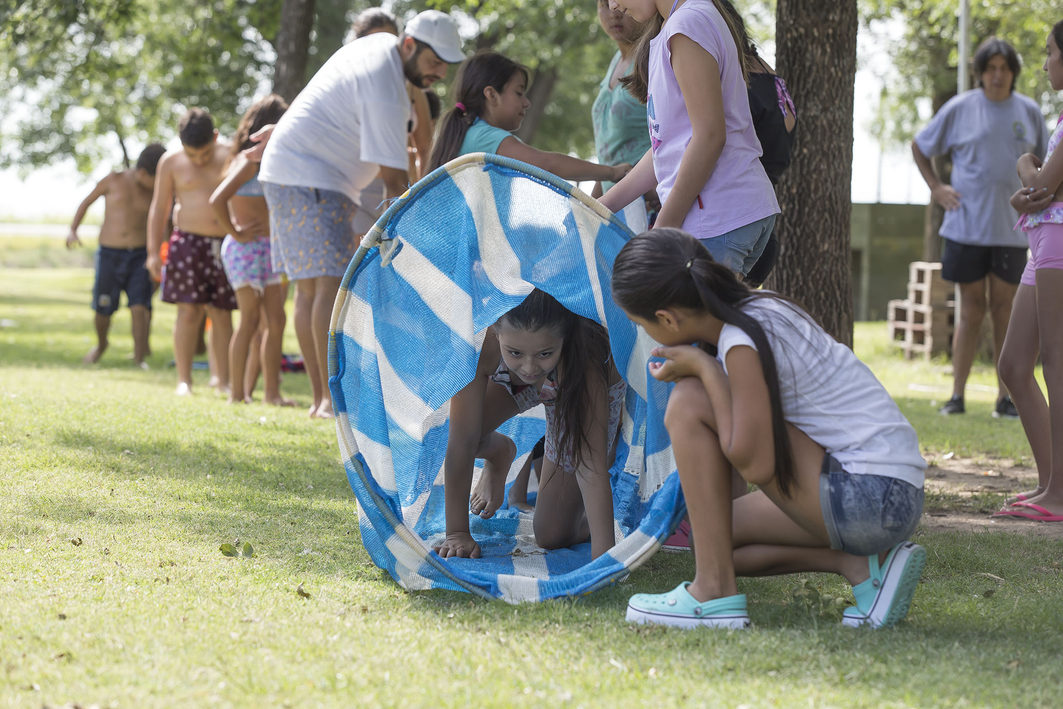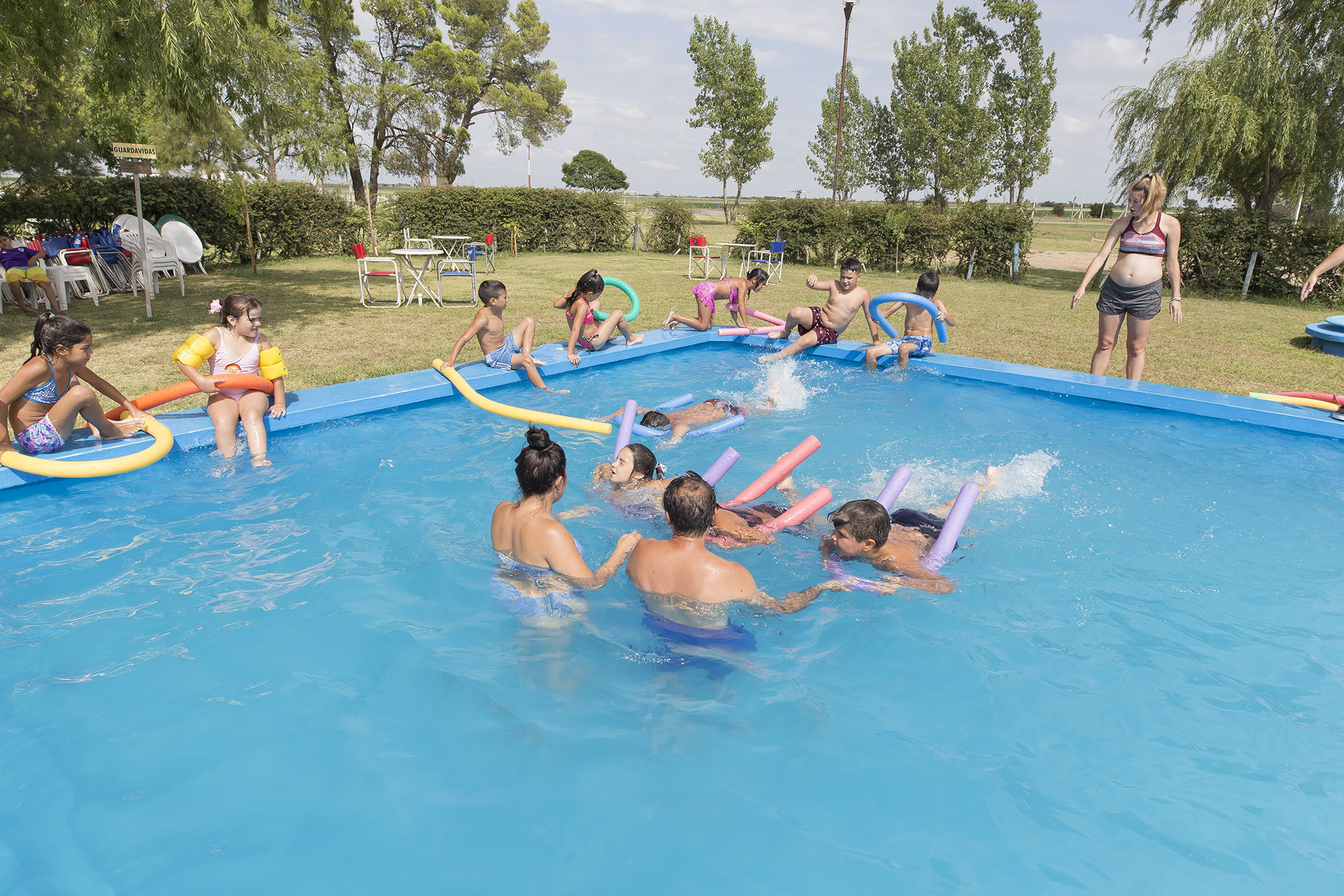 En mañanas que se mostraron ideales y soleadas, se ofreció en la pileta una enseñanza en el agua que apuntó a ambientación y flotación más inmersión para búsqueda, junto a la incorporación de estilos de natación. Mientras que en jornadas nubladas y frescas, los docentes propusieron la recreación con diferentes juegos y deportes rotativos.