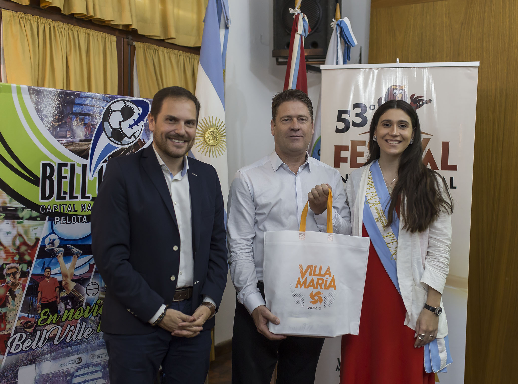 El Dr. Gill le propuso a su par bellvillense suscribir un acuerdo entre el Festival de Villa María y la Fiesta de la Pelota de Fútbol de Bell Ville, para que en cada edición de ambos espectáculos haya un intercambio de artistas locales.