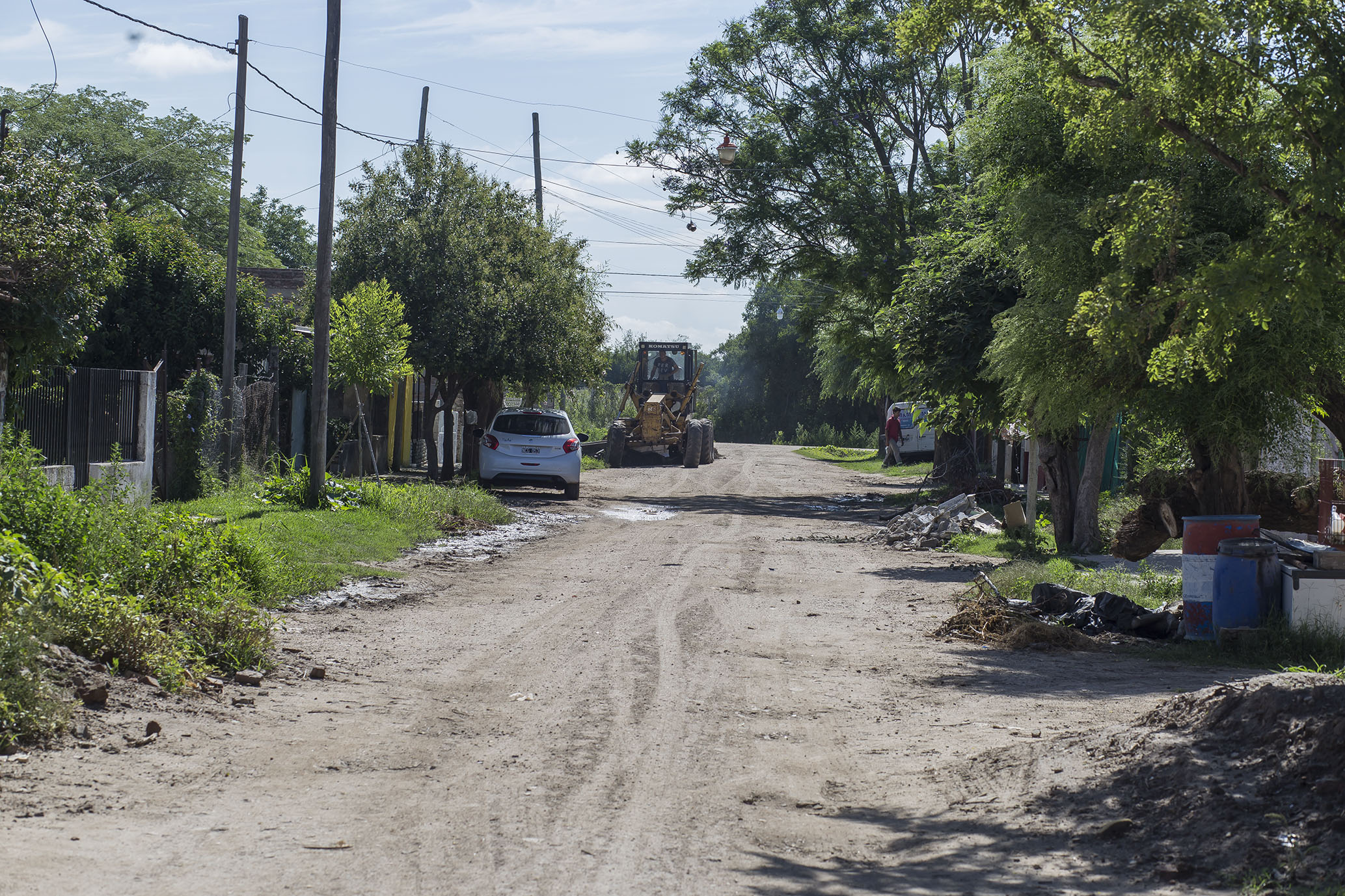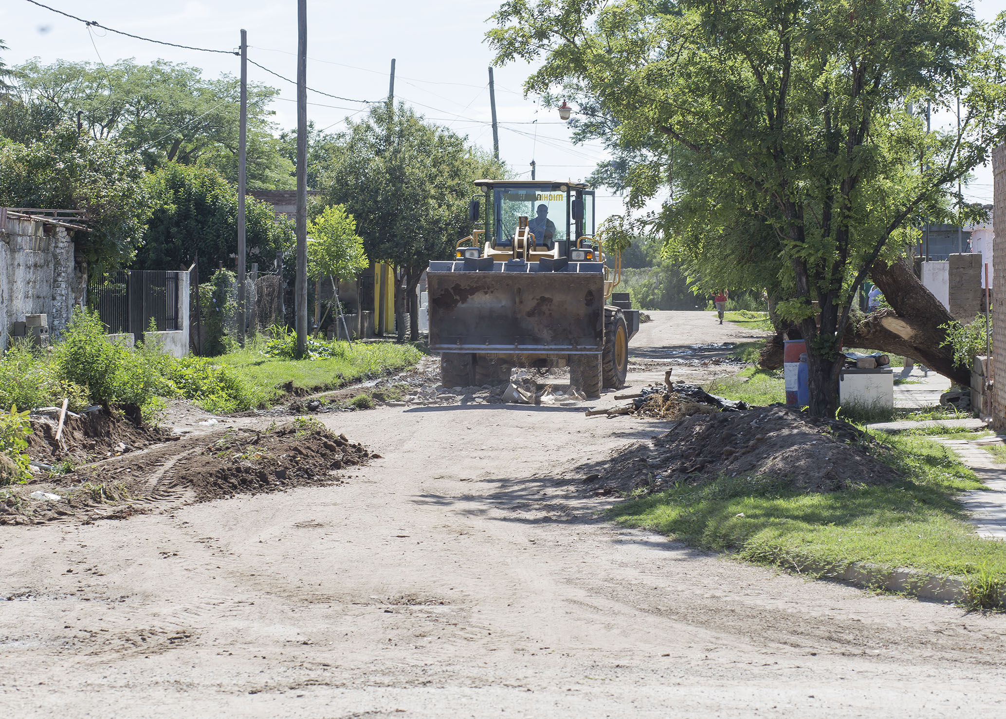 Con maquinarias y personal del área de Obras Públicas, continúa el nivelado y compactado de calles de tierra.