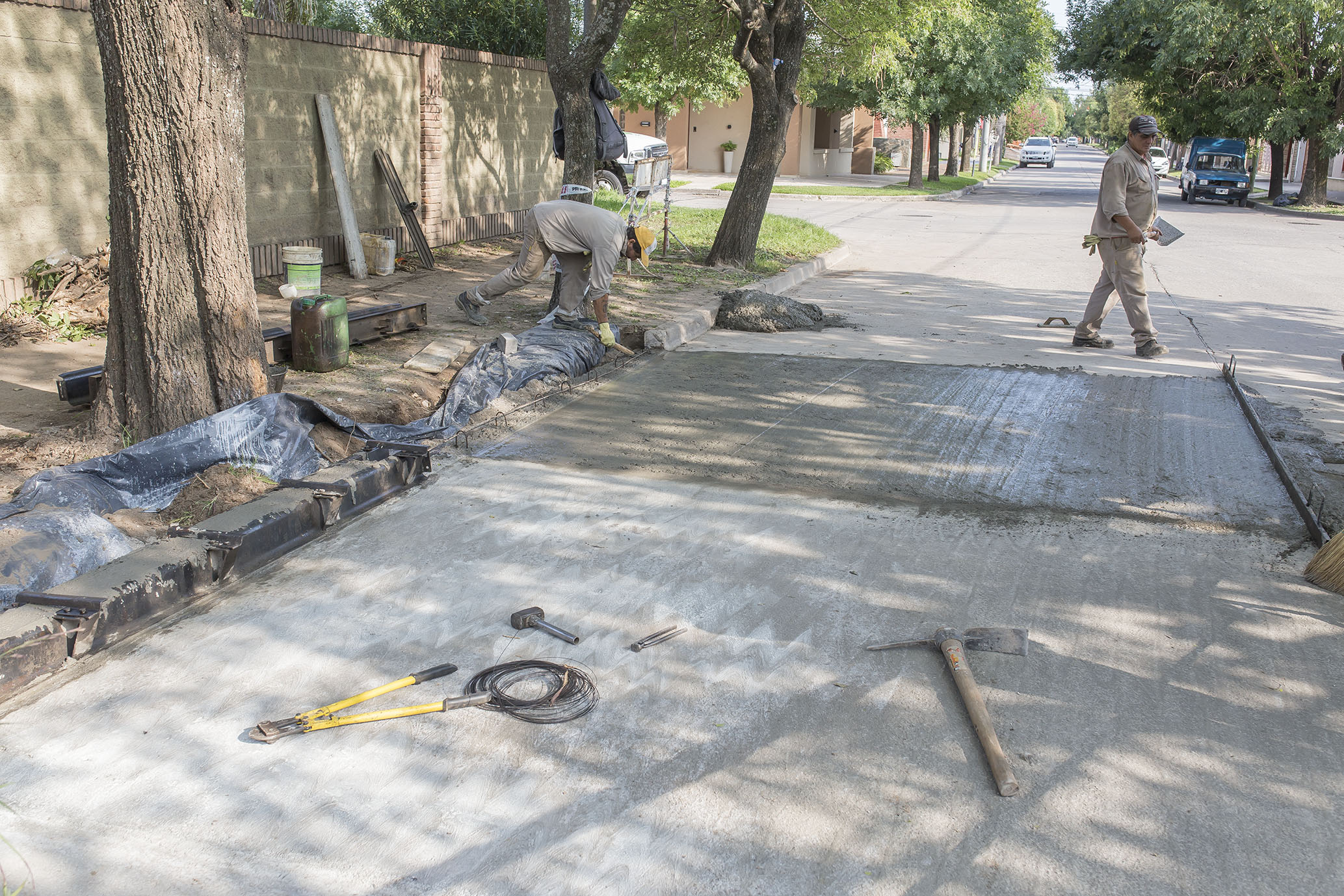 En calle Marcos Juárez se continúa con el bacheo de hormigón. Ahora se rellenó el paño que se había levantado por el deterioro que presentaba.