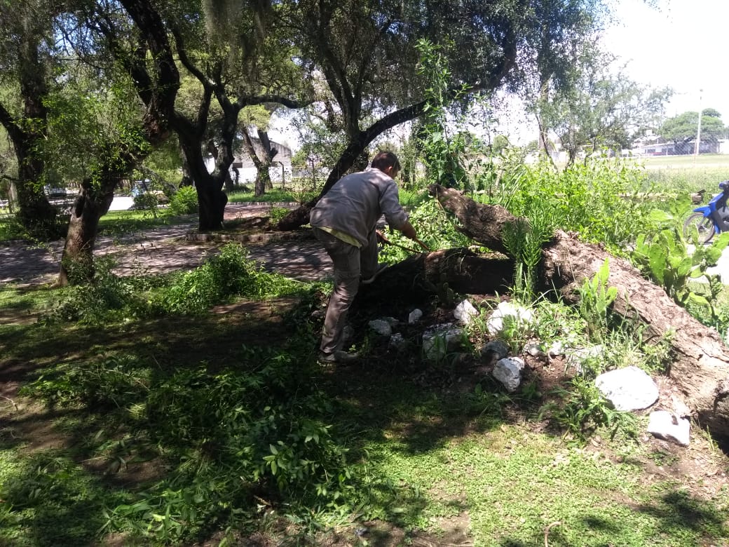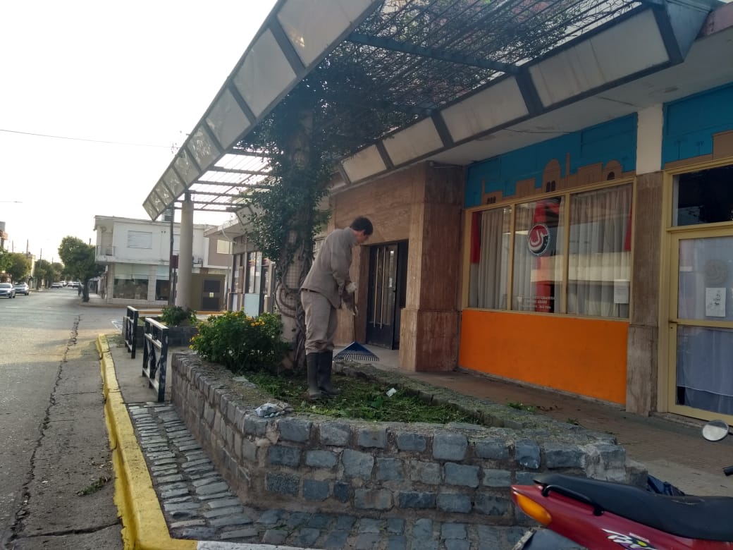 Para ello se cumple con tareas varias de limpieza debido a la caída de árboles y desechos por el temporal de estos días. También se continúa con el desmalezado, podas correctivas y demás trabajos de mantenimiento en edificios públicos, dispensarios, SUM Municipal, paseos públicos y rotondas, además de los ingresos a la ciudad.