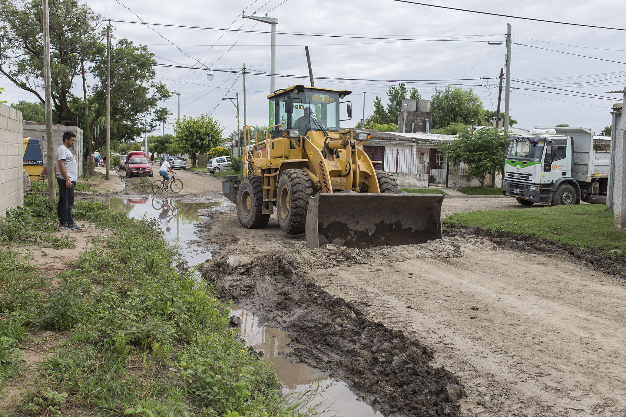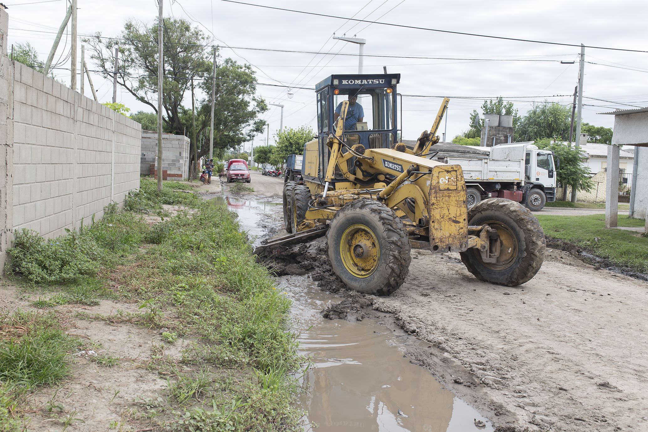 Con maquinaria municipal, se procede al nivelado de la arteria, como así también a la demarcación de cunetas para permitir un mayor escurrimiento del agua. El nivelado de calles abarca también las arterias aledañas.