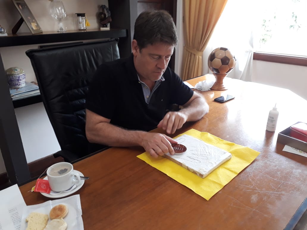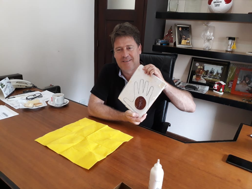 Esta mañana, el intendente grabó una de sus manos que también irá en el mural.