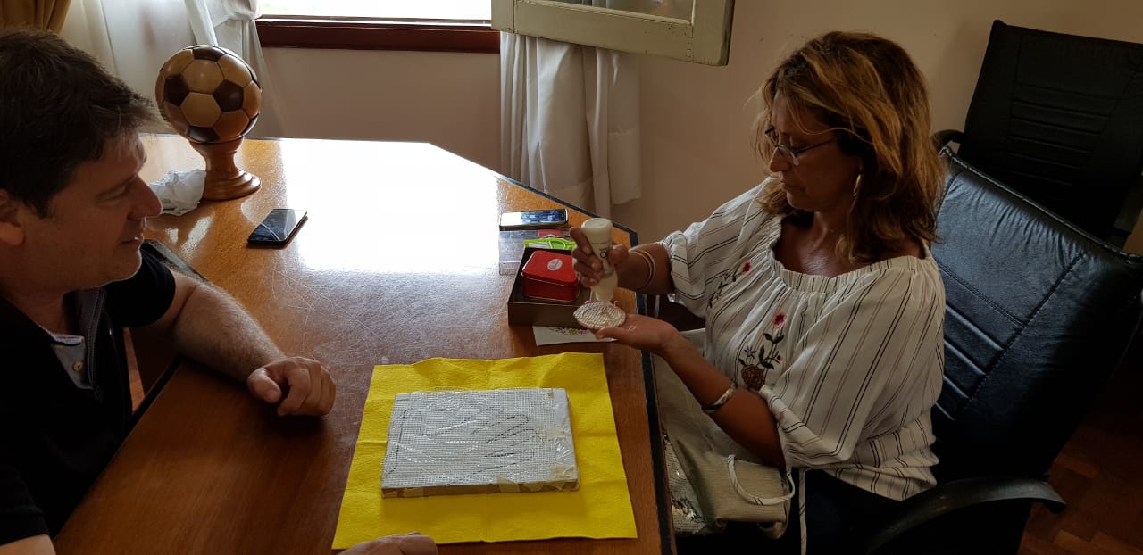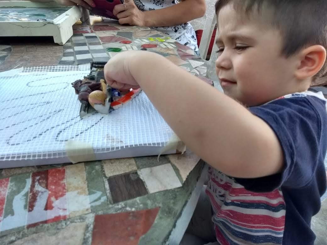 Desde hace más de dos meses, la artista local Lorena Correa está trabajando en un mural con técnica de mosaiquismo a fijar en la pared exterior sobre calle Ecuador de la Guardería Municipal Constancio C. Vigil.