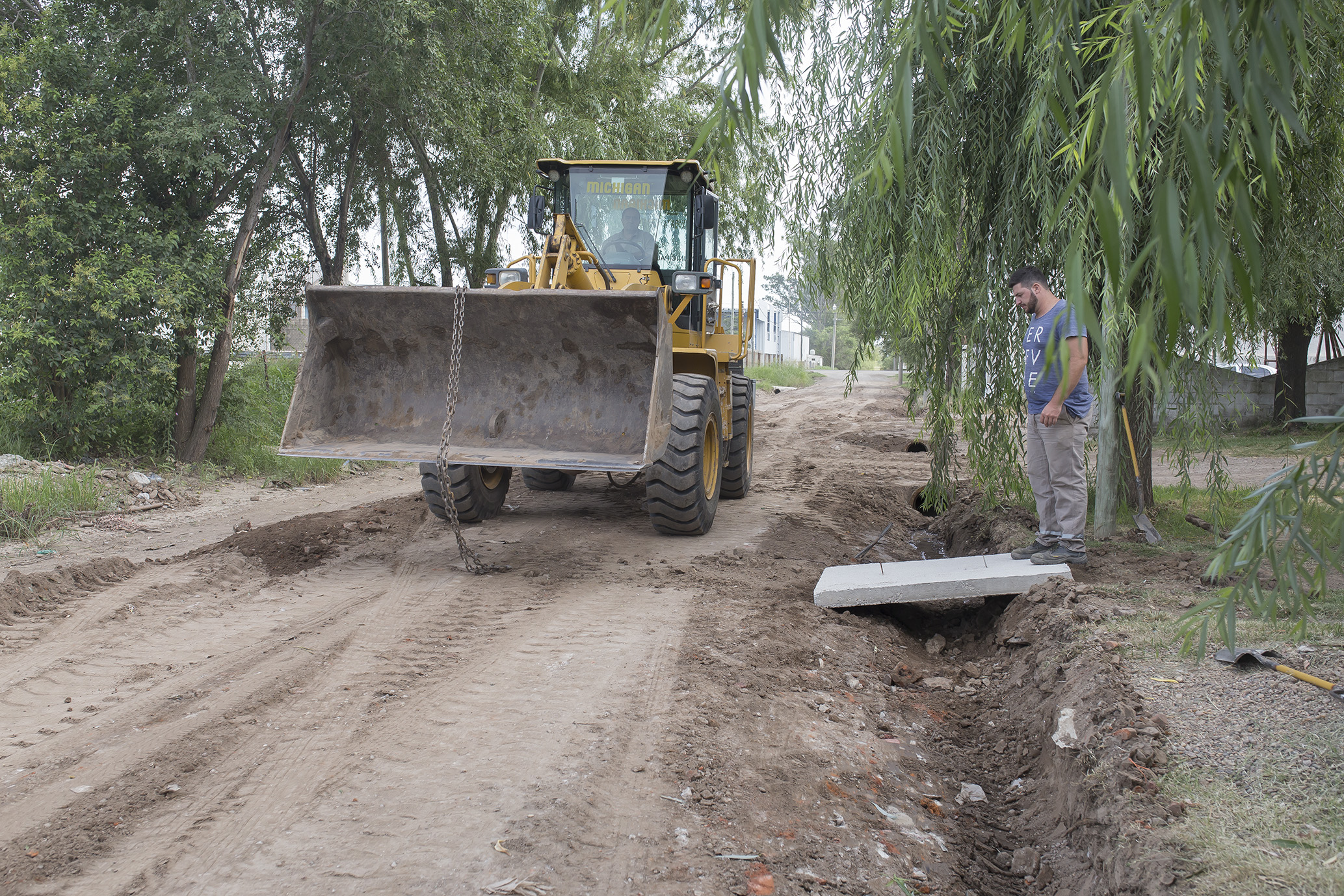 Se trabaja en el nivelado y demarcación de cunetas en calle Cura Ferreyra camino al IPEA Nº 293 ex Ena, en las arterias cercanas.