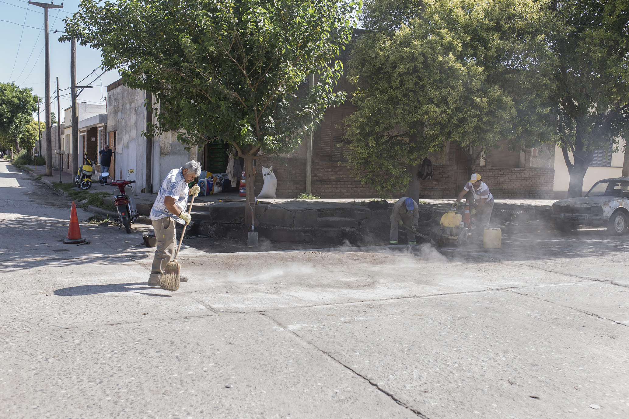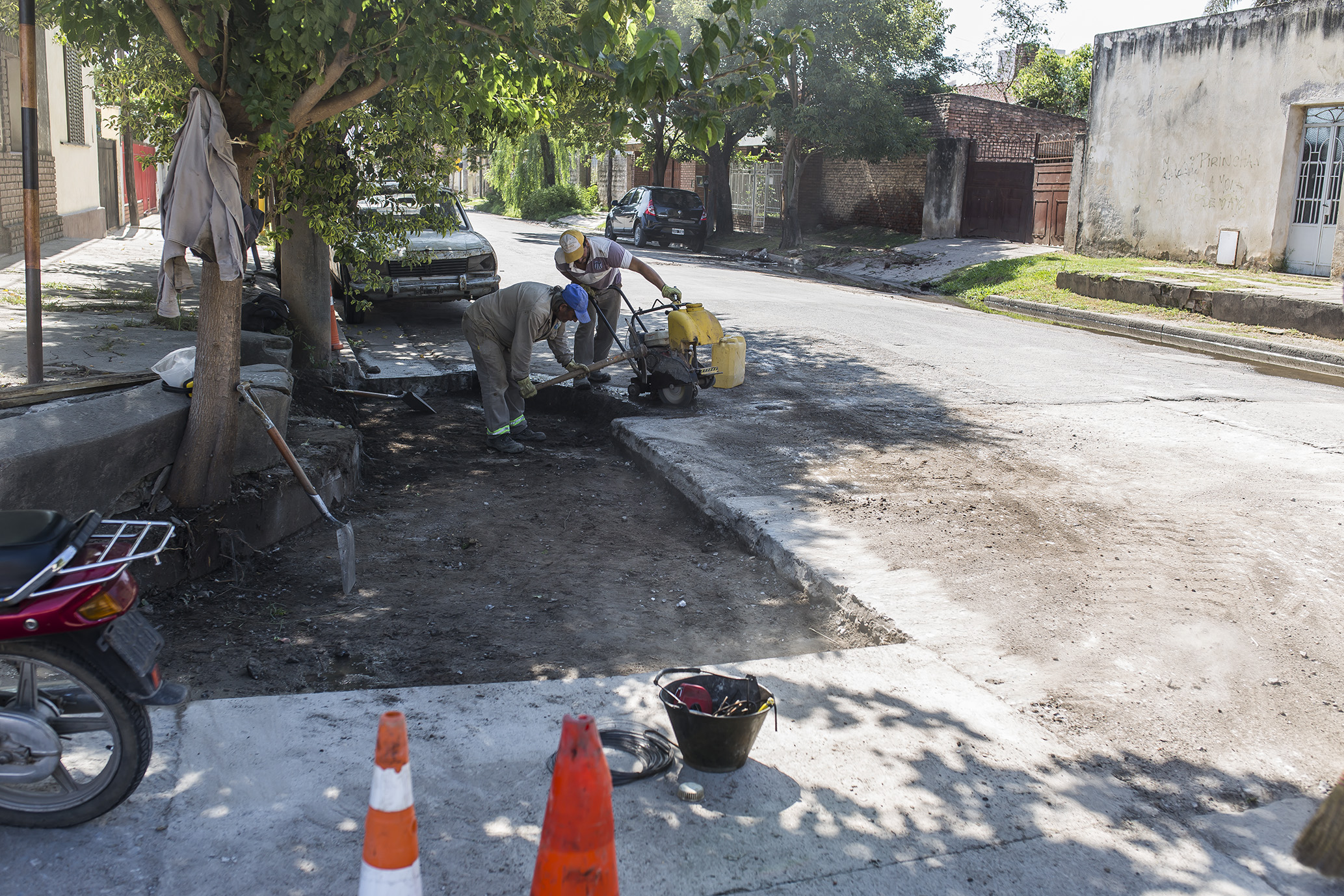 Está culminando la reparación integral de la bocacalle de Vélez Sarsfield y Echeverría, incluyendo la reconstrucción del cordón.