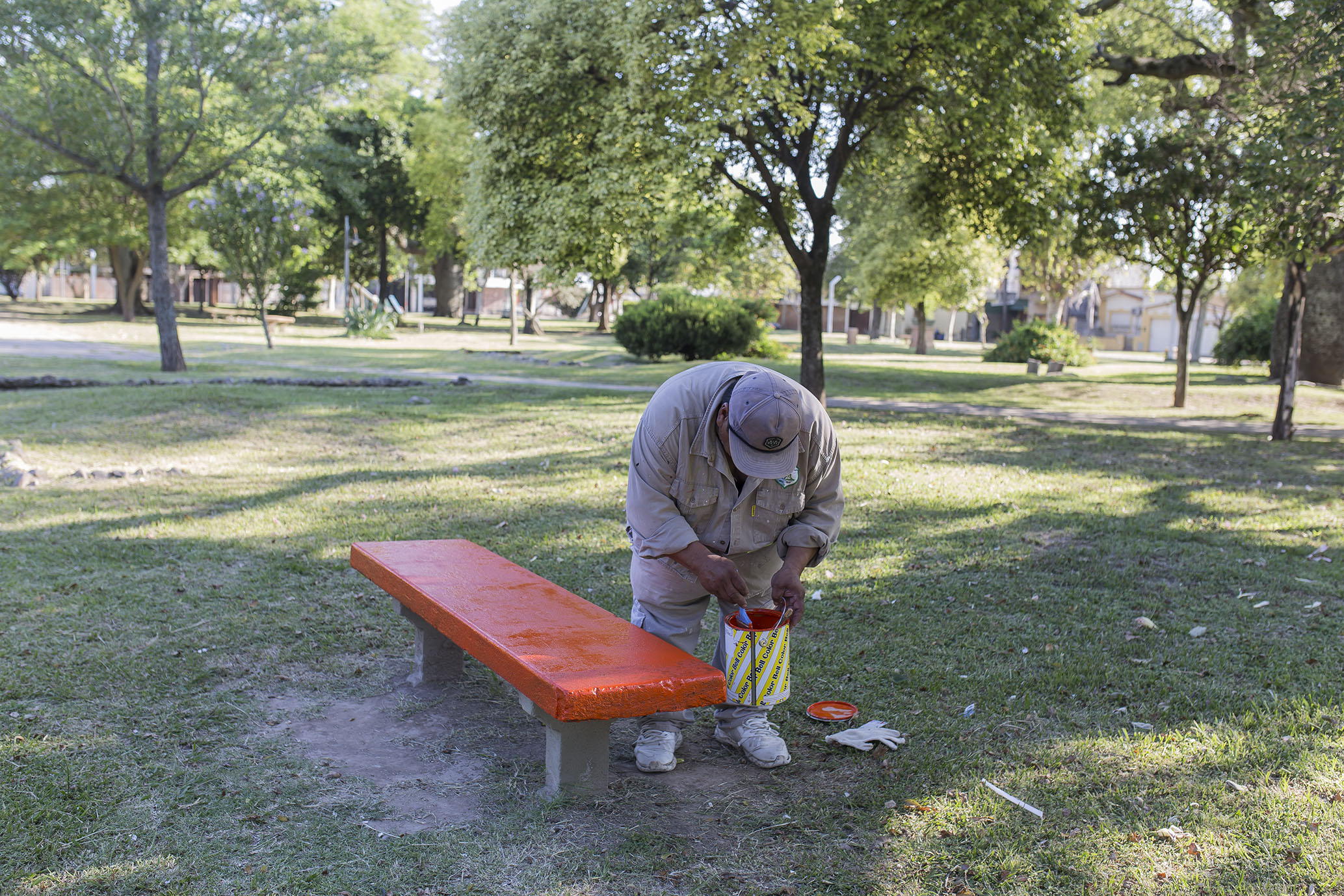Con el arreglo y pintado de bancos, monumento, etc., comenzó un mejoramiento de la Plaza Haedo.