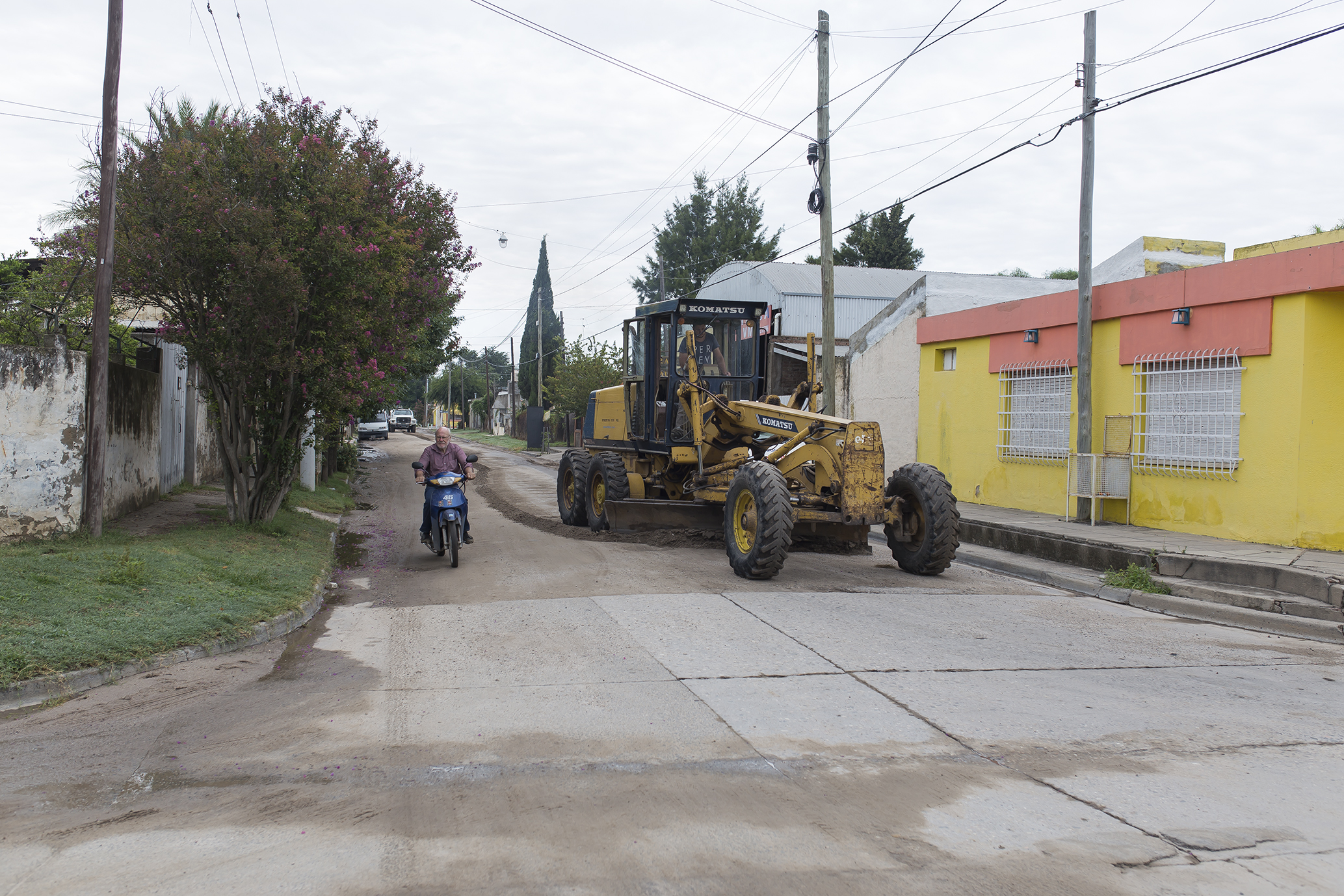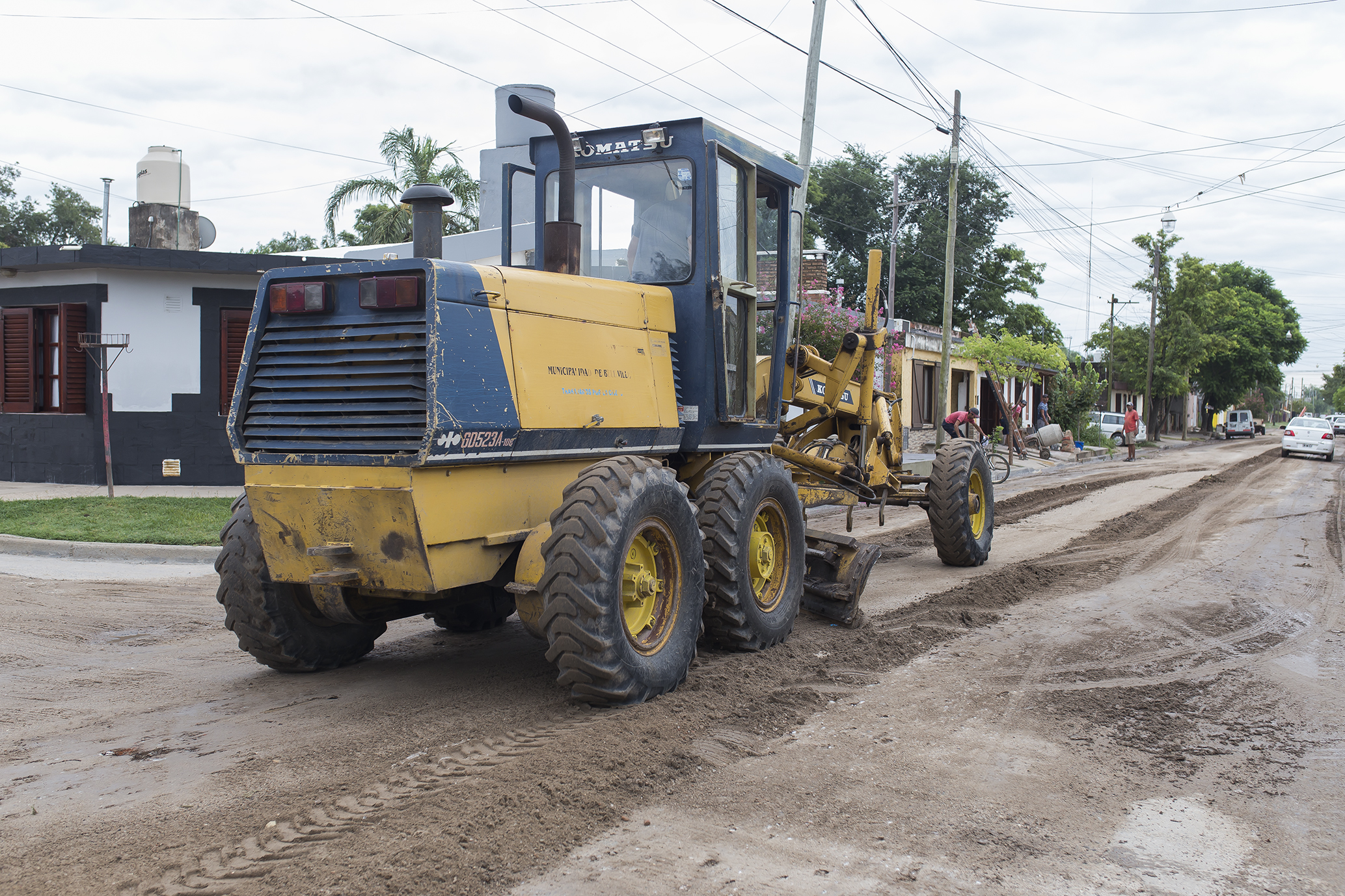 Continúa la tarea de nivelado de calles de tierra. La actividad se reanudó luego de las intensas lluvias del día de ayer.