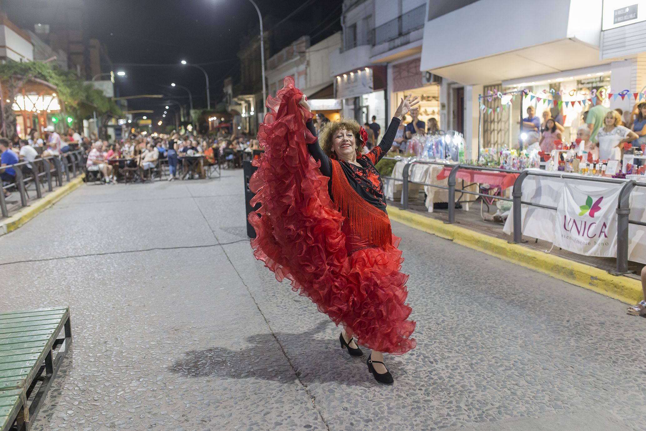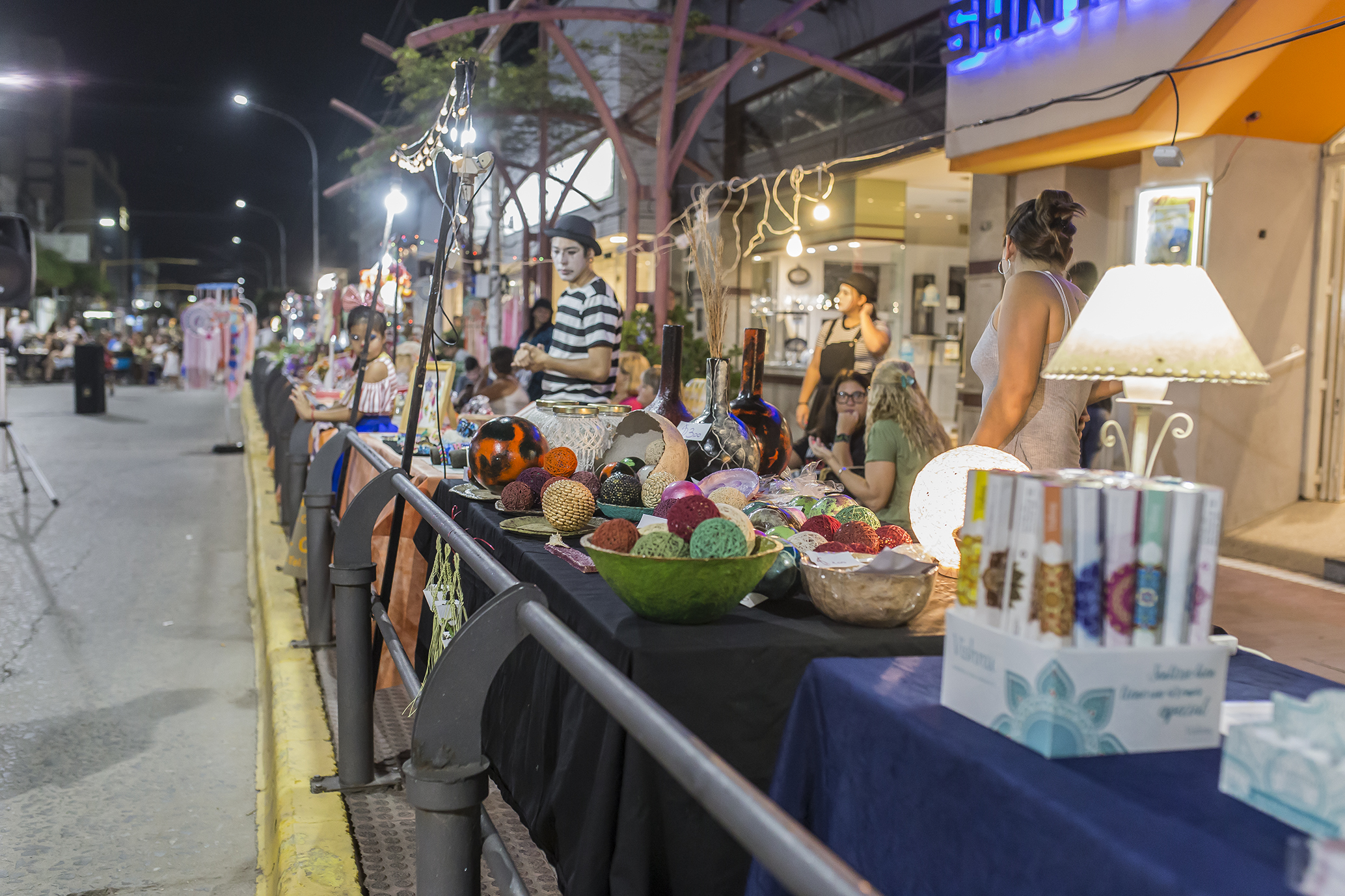 Los numerosos bares y negocios que se sitúan sobre esa arteria, ofrecieron una variada oferta gastronómica, ubicando las mesas sobre la vereda y la calle, al igual que los artesanos y microemprendedores locales quienes mostraron sus productos con la acostumbrada producción de talentosas manos bellvillenses.