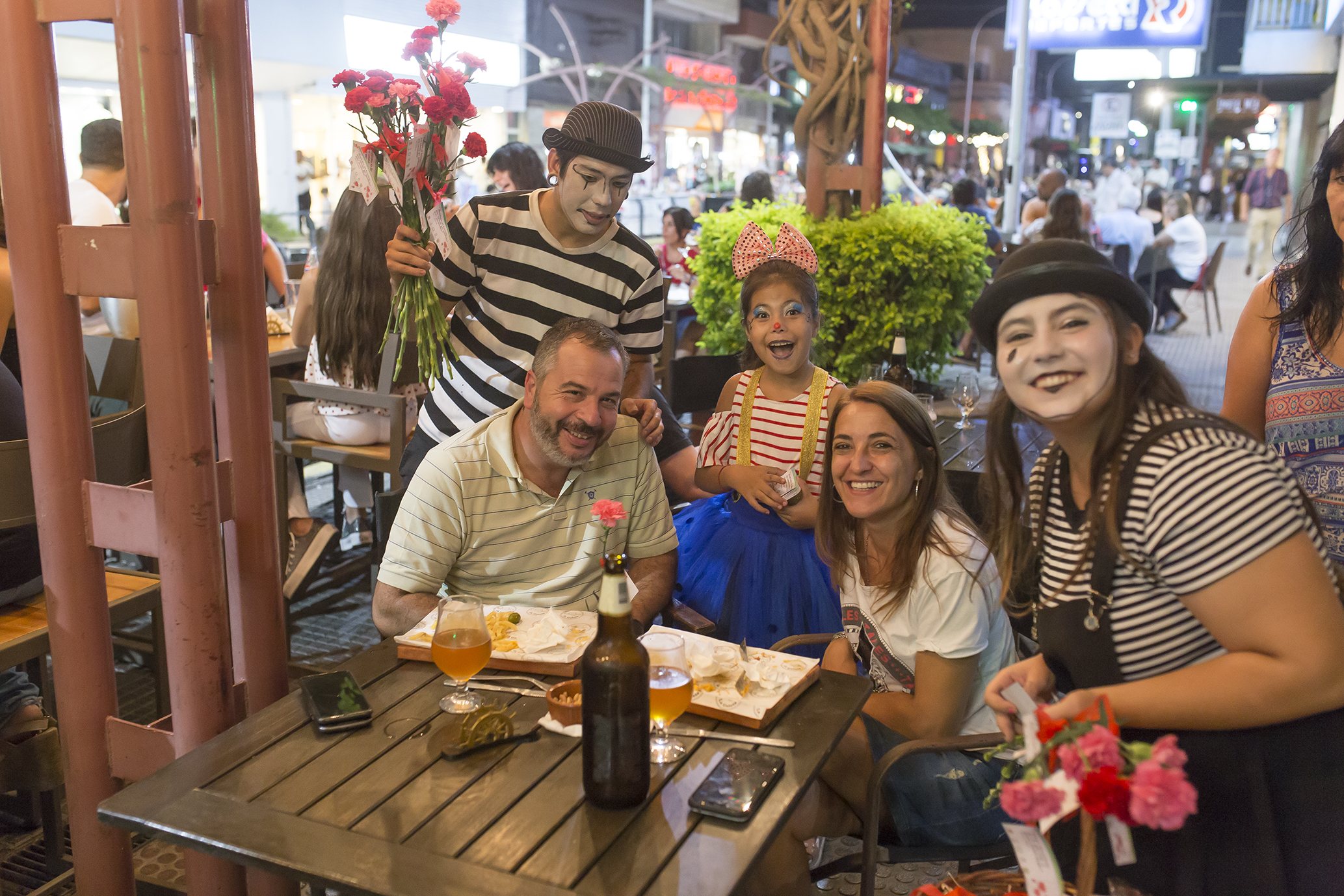 Se sumaron también a estas propuestas, los mimos de “Clowns Company”, quienes además de sonrisas y calidez, repartieron flores y bombones entre los presentes.