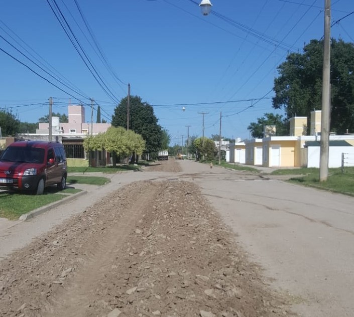 Asimismo, se estuvieron cumpliendo tareas similares con la motoniveladora en el sector de tierra de calle Chaco.