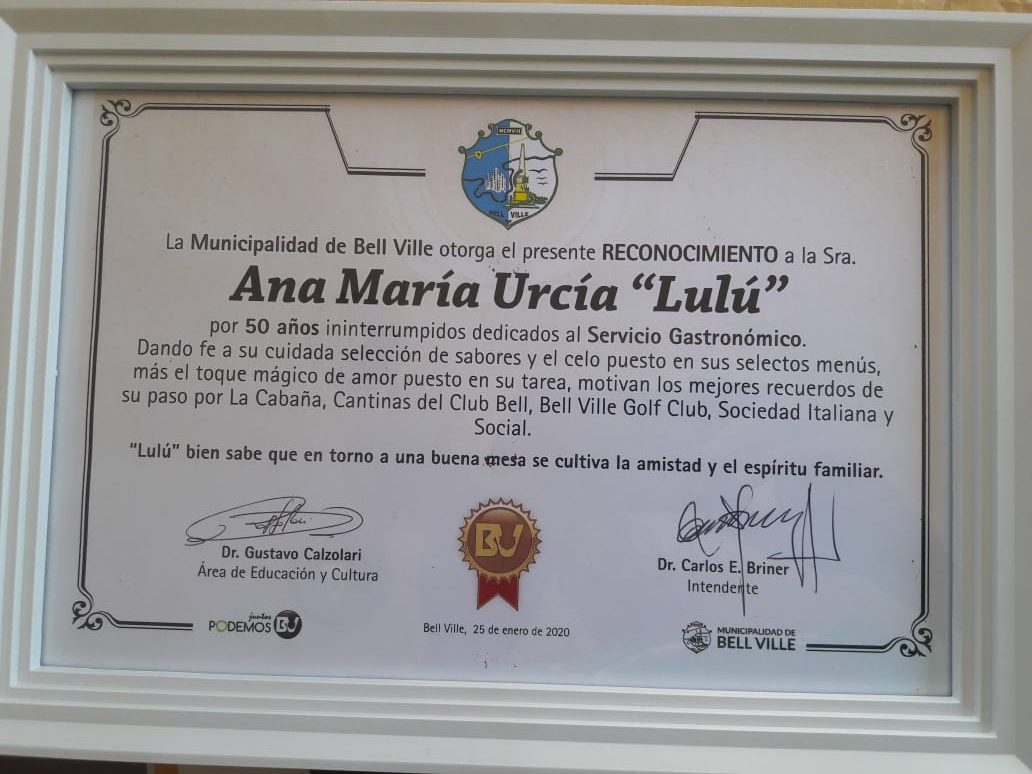 Con la presencia del intendente, Carlos Briner, se otorgó un reconocimiento a la Sra. Ana María Urcía, “Lulú”, por 50 años ininterrumpidos en el rubro gastronómico.