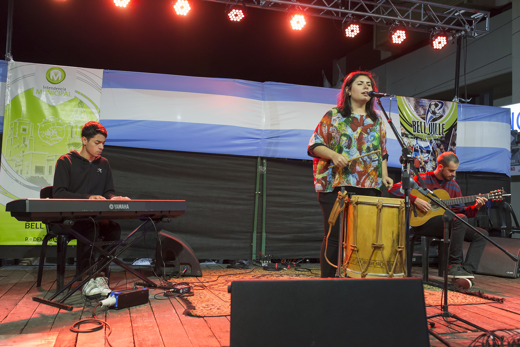 El canto lírico se apoderó en el comienzo de la presentación con la voz del artista local Juan Francisco Sierra, acompañado por la academia de danzas de la Profesora Cristina Barra.