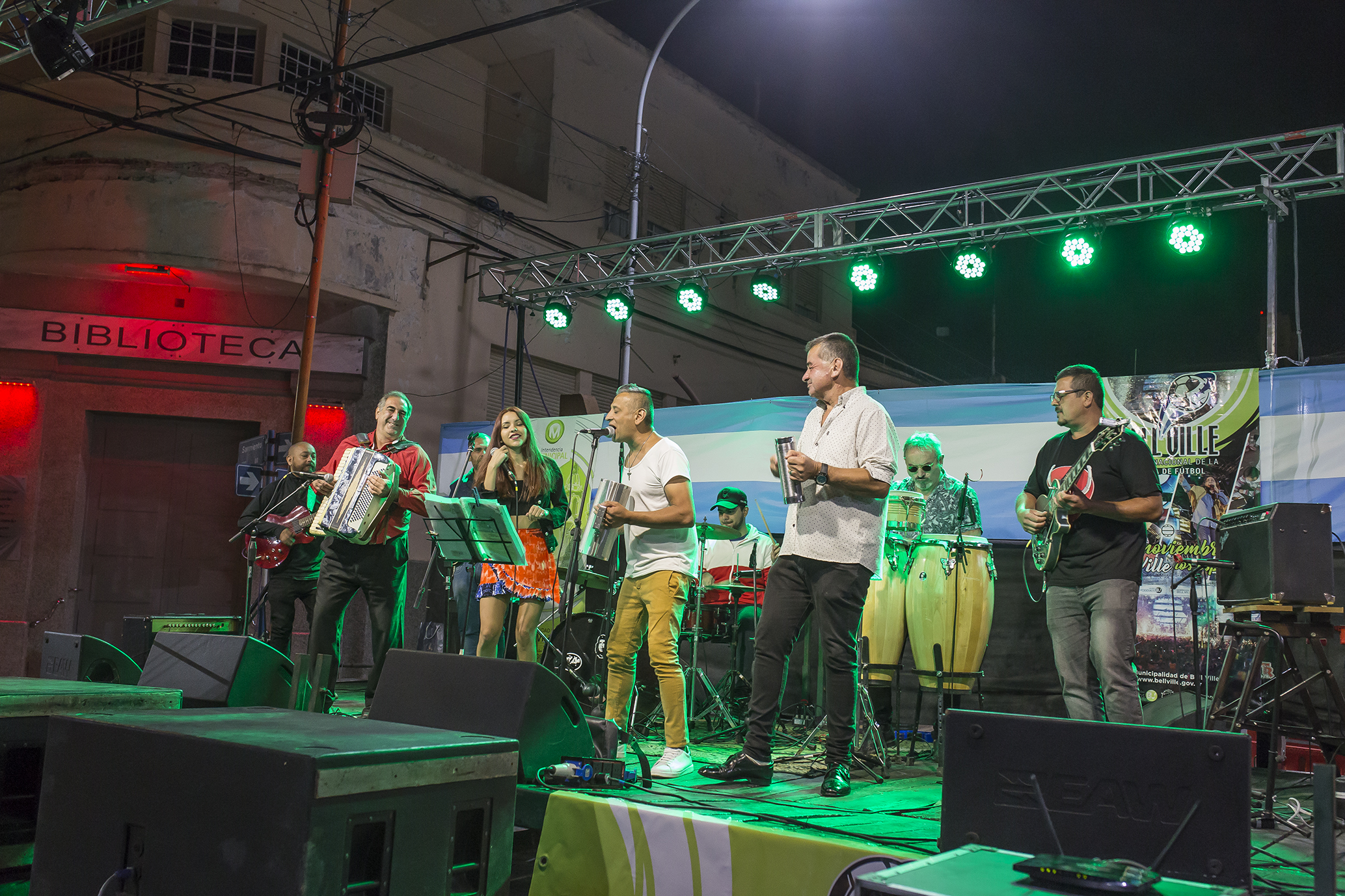 Luego, la voz del tango se hizo presente a cargo de Luis “Puchi” Giletta y su banda “Attenti Pebeta”, acompañados por la academia de Tango “Cambalache”, perteneciente al Centro Cultural Municipal.