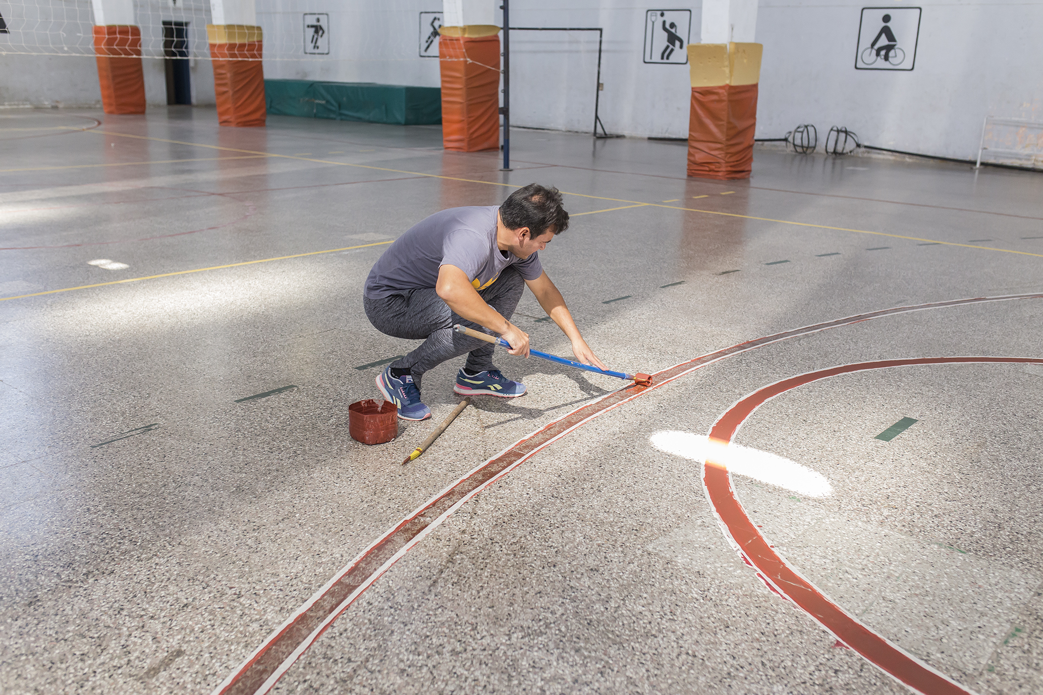 Previo al comienzo previsto para este lunes 9 de marzo de gran parte de las actividades propias, y sosteniendo el criterio de la gestión de gobierno sobre el cuidado de sus bienes, en el SUM Municipal que oficia de sede de la Dirección de Deportes se han realizado tareas de renovación de pintado de las canchas de Vóley, Hándbol y Básquet contemplando medidas reglamentarias.