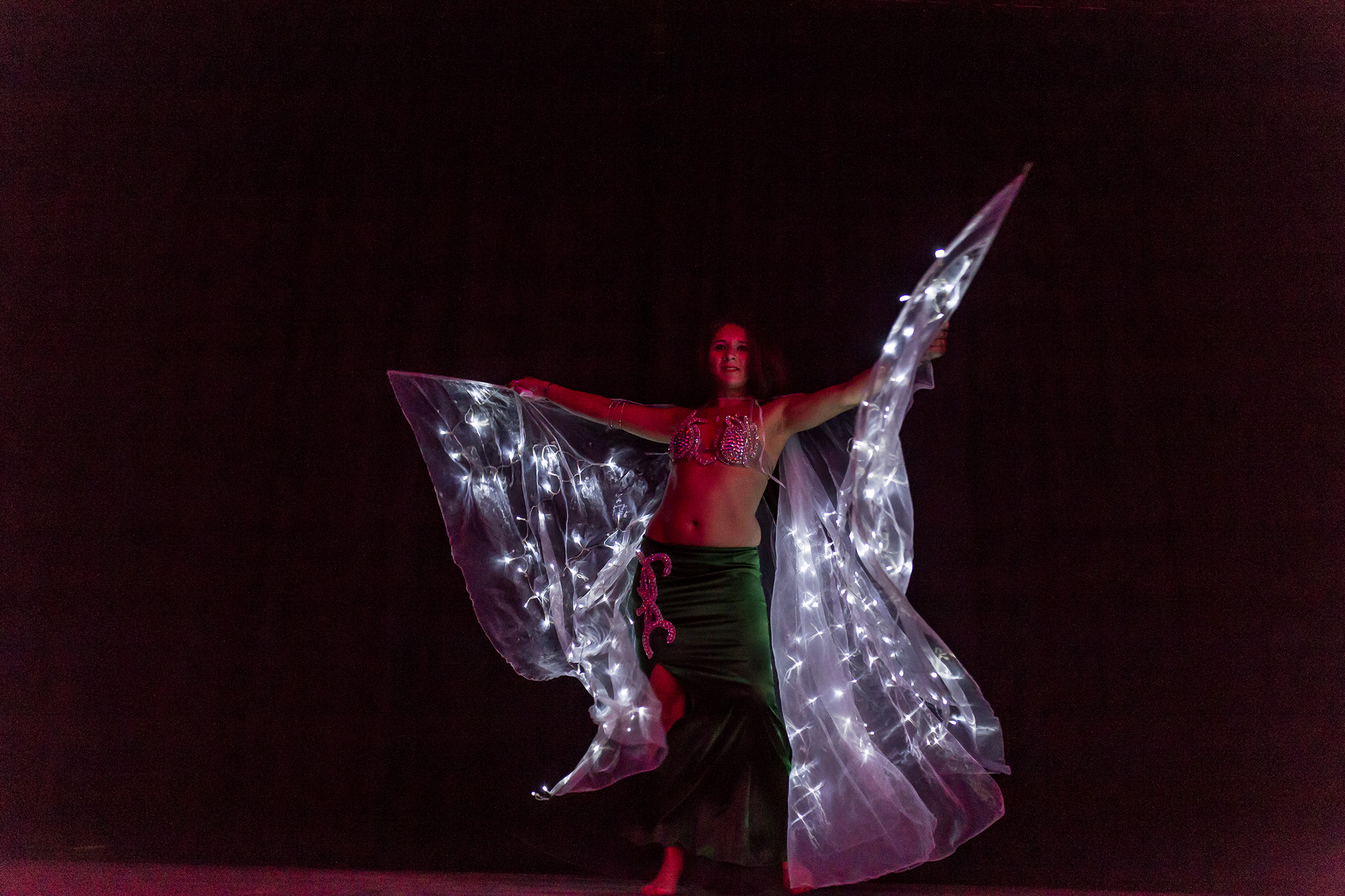 La siguió la bailarina de danzas árabes Gabriela Galván, en otra magistral actuación, dando paso posteriormente al secretario de Coordinación, Ernesto Borrageros y al encargado de Educación y Cultura Dr. Gustavo Calzolari, quienes hicieron entrega del decreto que reconoce de “Interés Municipal” al evento denominado “Mujeres Culturales”, con  producción de Gustavo Blengino, director de la academia “Corazón de Viento”.