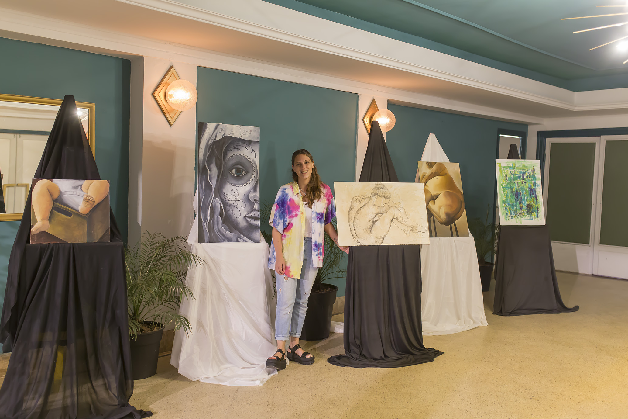 Durante el transcurso de la velada artística no podía faltar la plástica que estuvo presente a través de Noelia Bondone, quien produjo en vivo una bellísima obra colectiva, junto a niños y público presente, que se sumó con sus pinceladas a la colorida expresión artística.