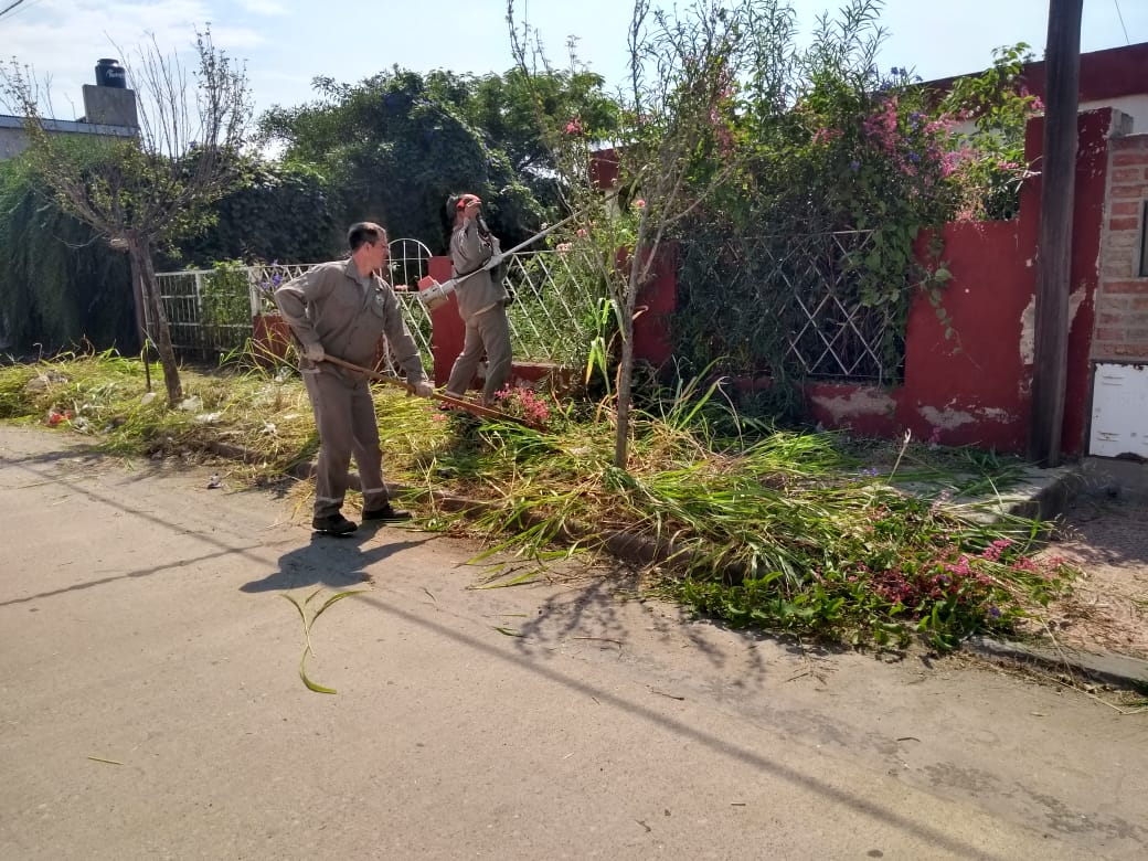 Personal municipal procedió al corte de malezas existentes en el frente de una vivienda de calle Mitre Nº 625, las cuales impedían el paso de peatones por la vereda.