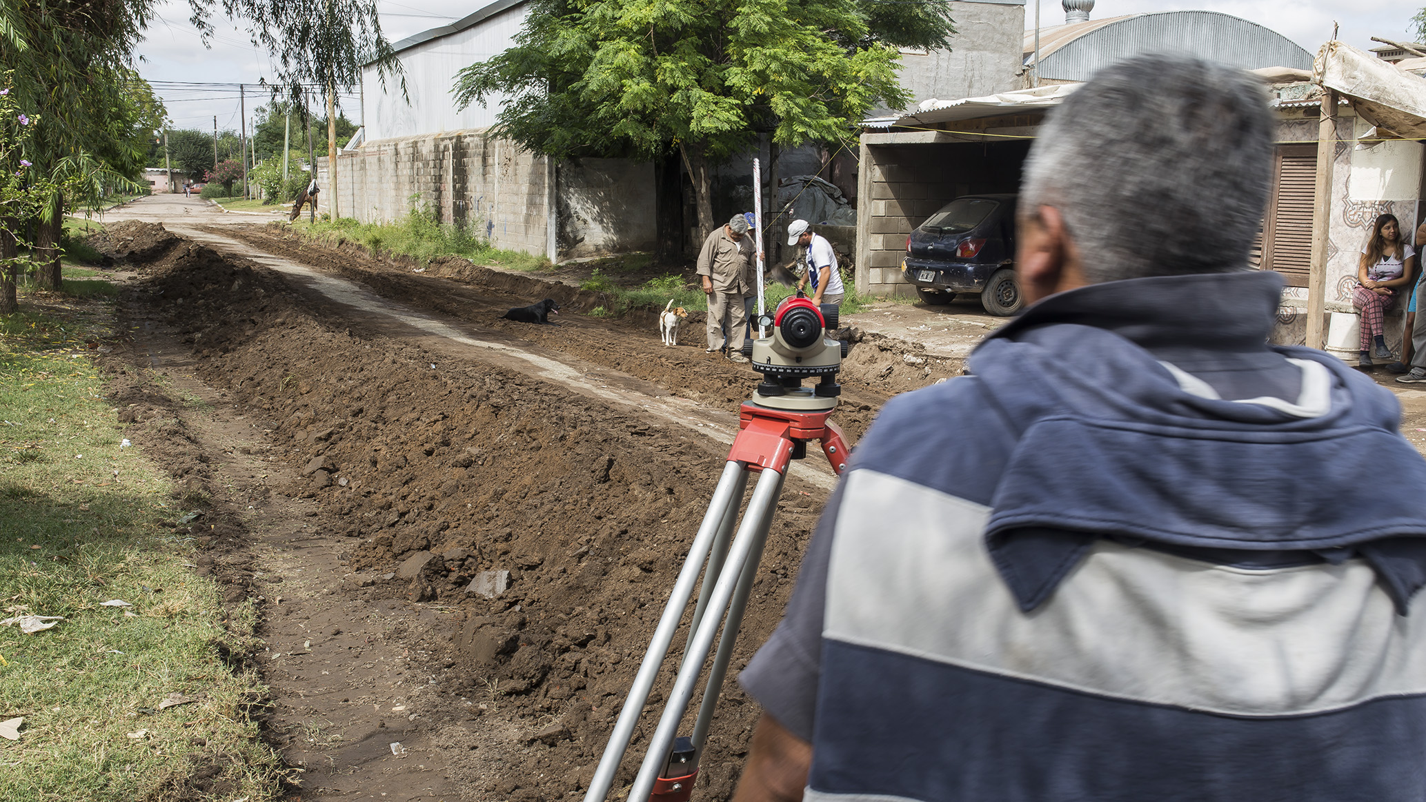 Con el nivelado y demarcación, comenzó la obra de cordón cuneta en el Pasaje Malvinas.