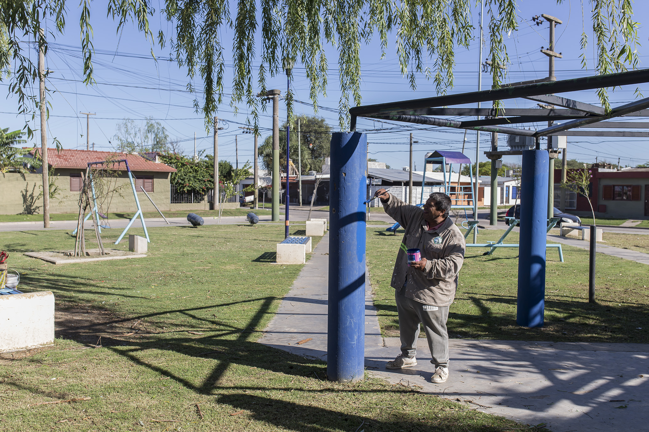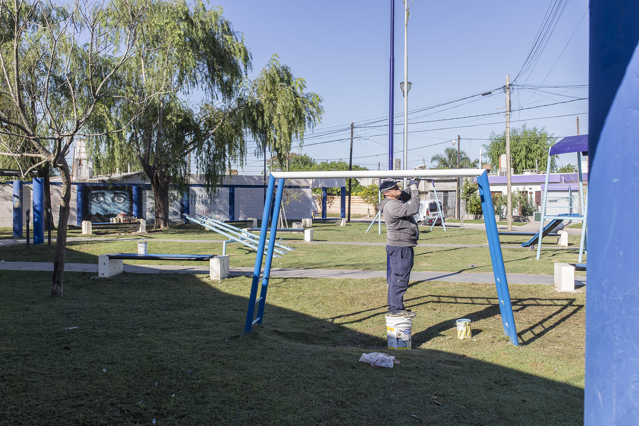 Personal municipal trabaja en el pintado de los juegos y demás infraestructura del lugar, además de limpieza y desmalezado.