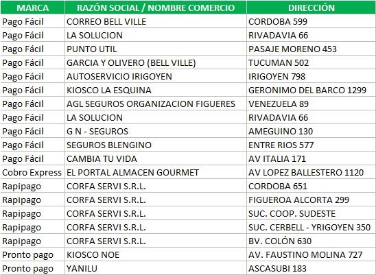 A fin de evitar aglomeraciones en ciertos lugares, se dan a conocer todos los locales de nuestra ciudad donde se podrán realizar los pagos correspondientes: