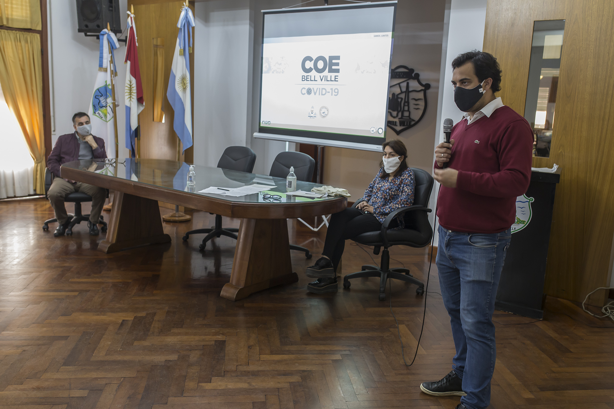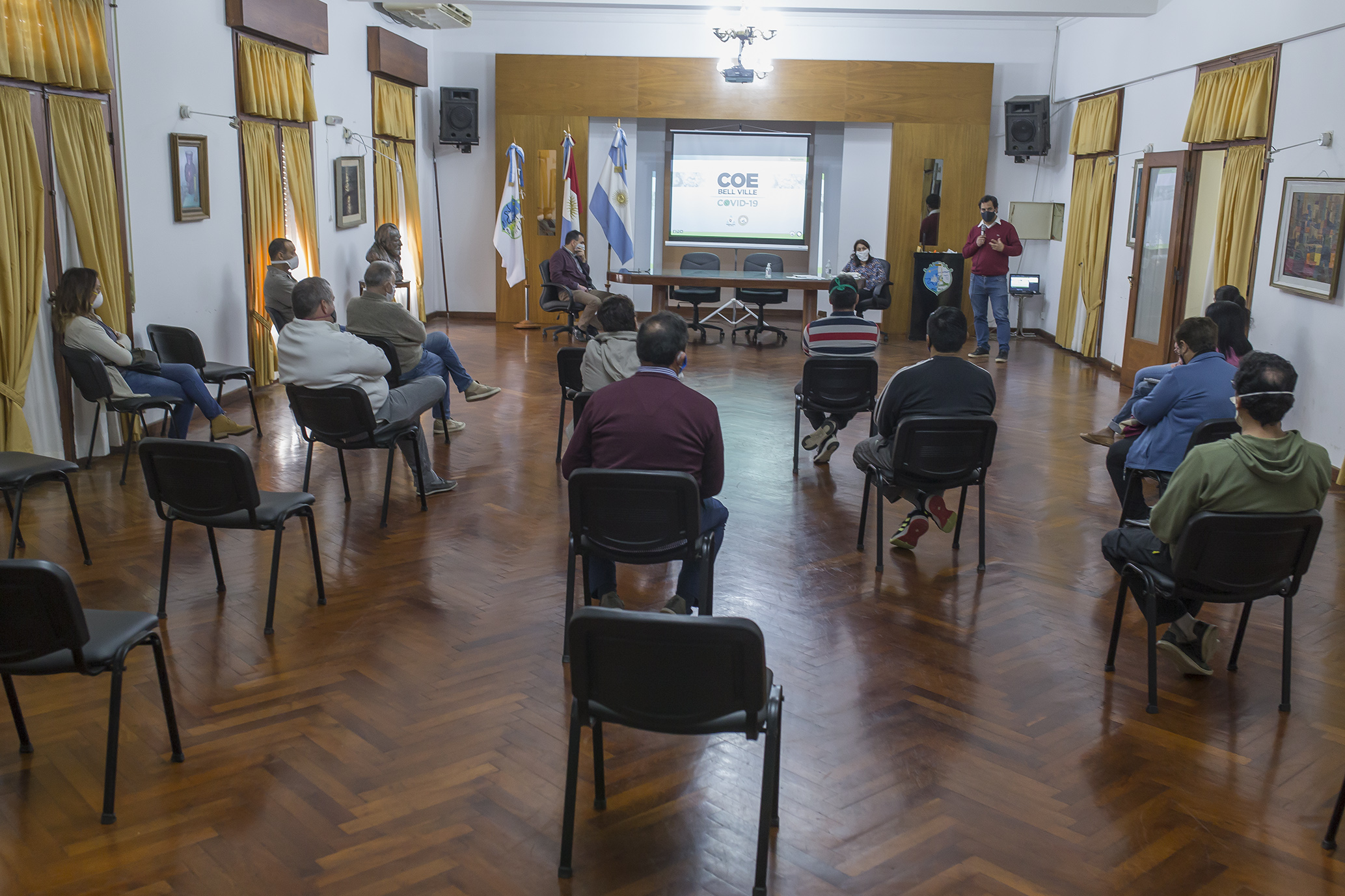 Hoy al mediodía en el salón Walter de Navazio, representantes del Centro de Operaciones de Emergencias COE-Bell Ville, se reunieron con representantes de los Centros Vecinales con el fin de explicarles sobre el Protocolo de Primer Nivel o de Atención Pre Hospitalaria de personas que presenten casos sospechosos de Covid-19 y se respondieron preguntas varias relacionadas con la pandemia.
