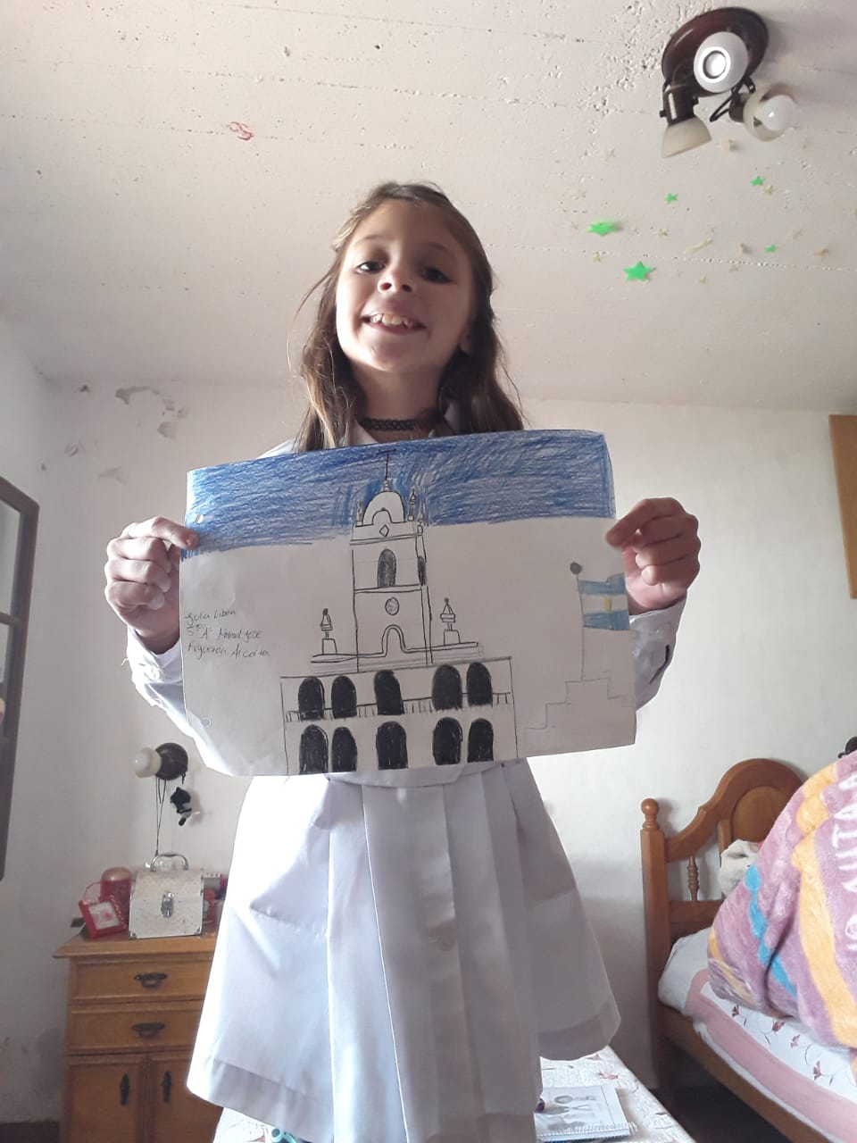 Deben remitir la foto con guardapolvo o uniforme, sosteniendo el dibujo entre sus manos. También invitamos a que esa figura la peguen en la ventana de sus hogares.