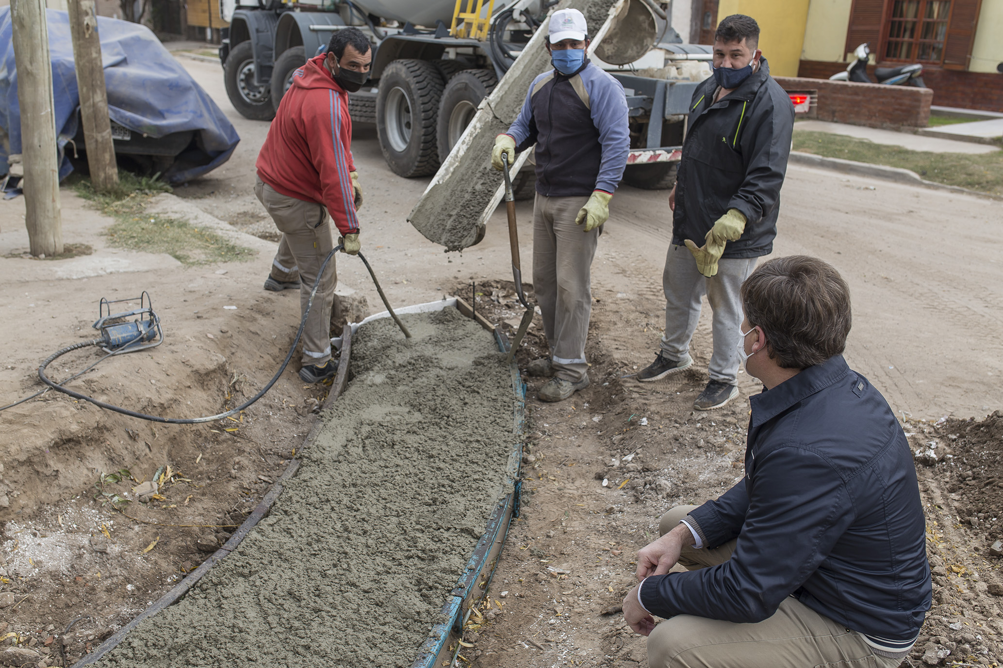En la mañana de hoy, el jefe municipal Carlos Briner, se hizo presente en la obra de cordón cuneta que se está construyendo en Pasaje Malvinas, entre calle Río Negro y bulevar Eva Perón.
