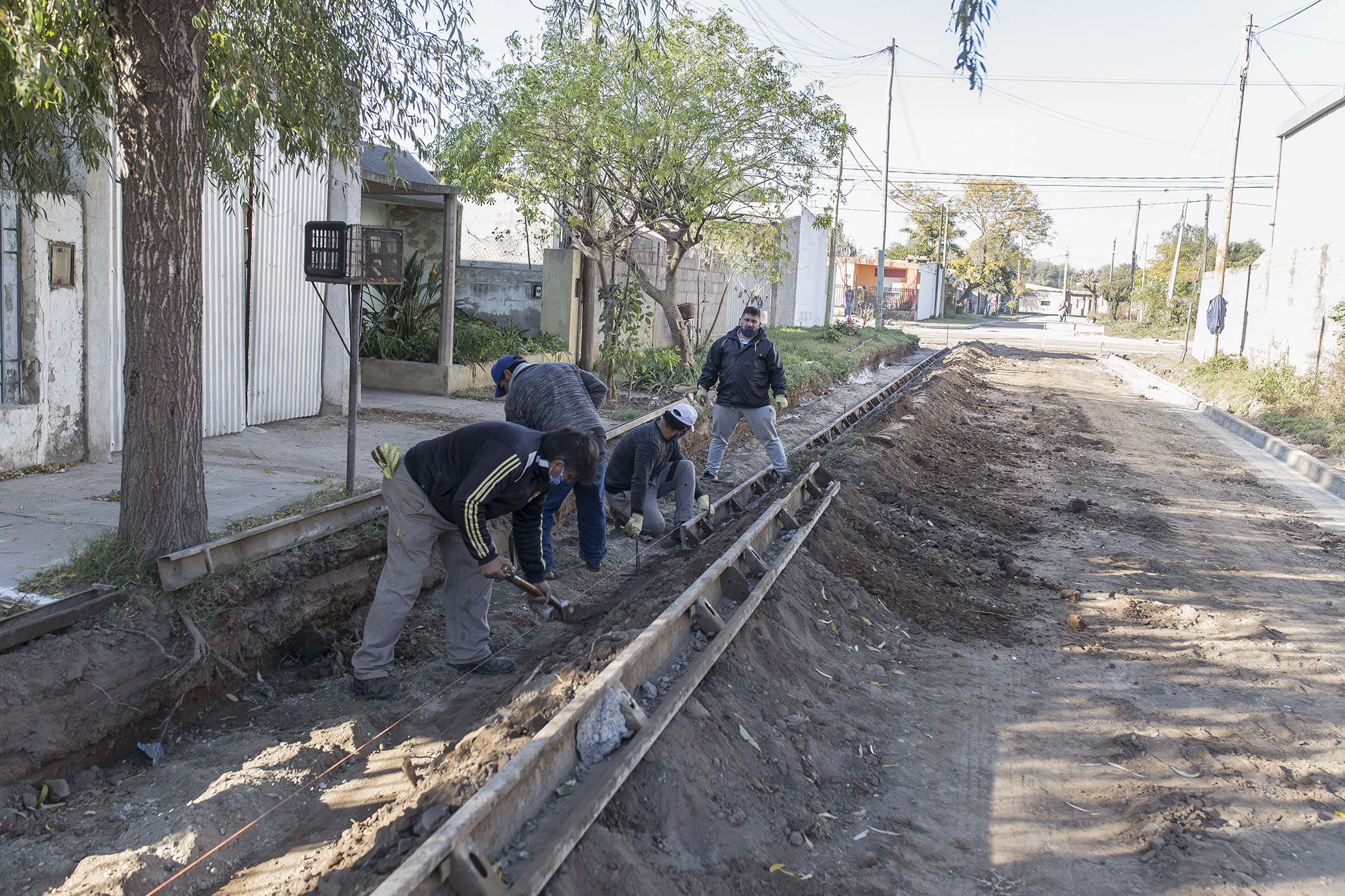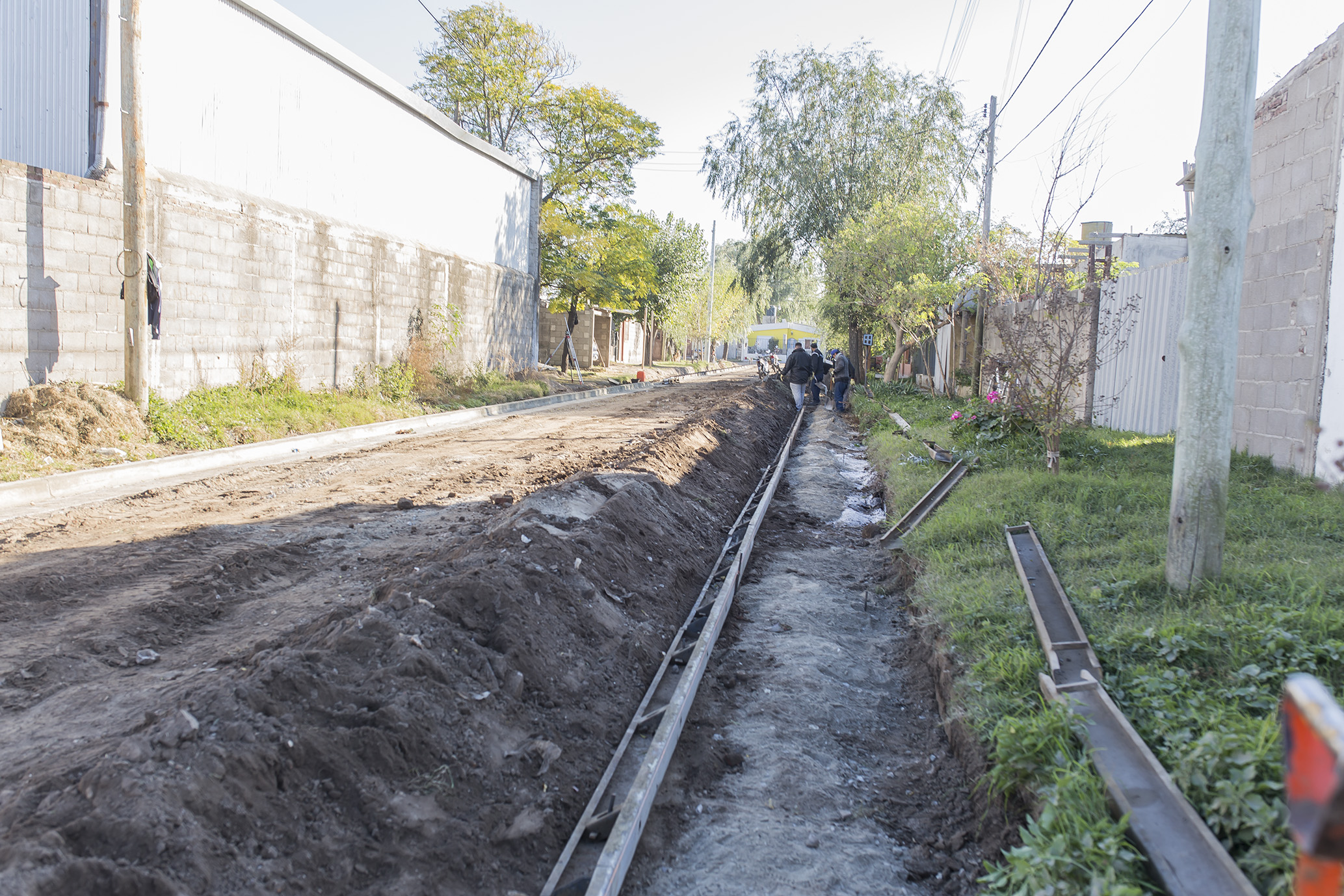 Avanza la construcción de cordón cuneta en Pasaje Malvinas, entre boulevard Eva Perón y Río Negro.