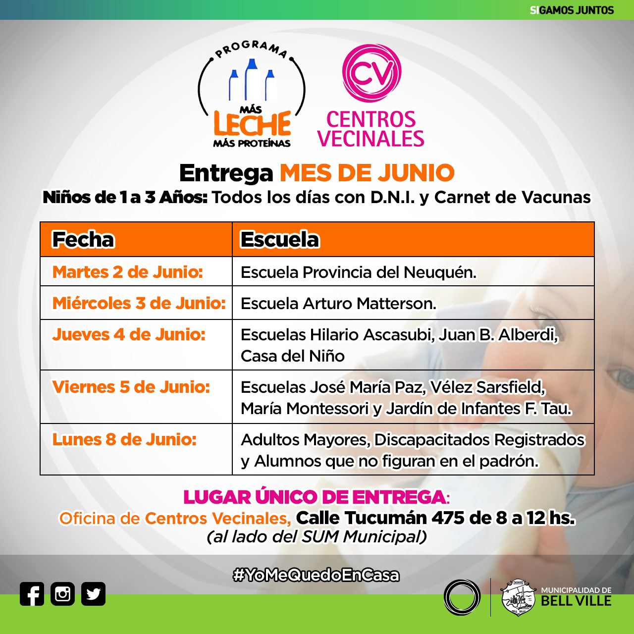 Se reitera que el único lugar de entrega es en Centros Vecinales de Tucumán 467.